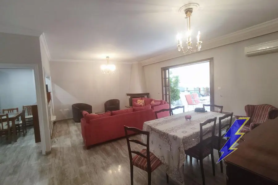 Argyroupoli, Single Floor Apartment,, Rental, 125 sq.m, year built 1994, 3 rooms, 1st, Availability: Available, Parking spot: Outdoor, Semi-outdoor, Heating: Air-condition, Autonomous Oil, Condition: axcellent condition, Renovated, Floor type: marble, Tiles, Window frames: Wooden, Energy class: B, Zoning: Residential, Position: Dual-aspect, Includes: Awnings, Bathroom, Fireplace, Loft, near tram, Solar water heater, Storeroom, Veranda, Characteristics: balcony, bathroom with window, Bright, built in closets, Furnished, intercom, intercom, no pets, painted. property ID: 2659