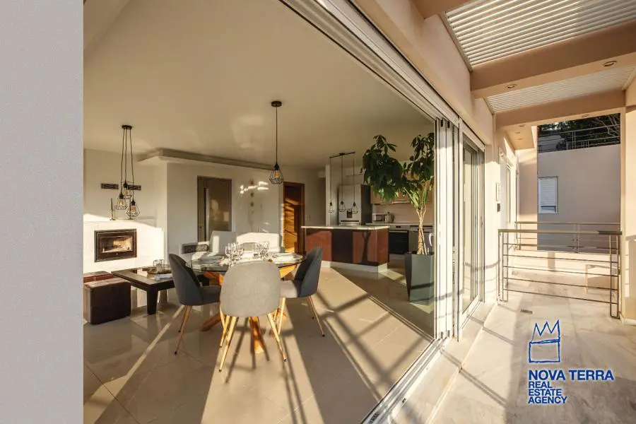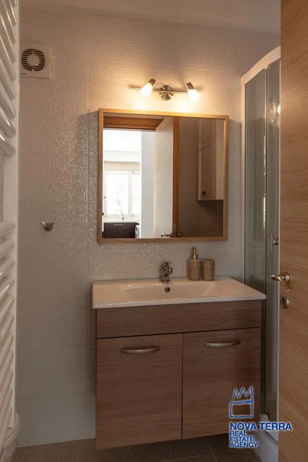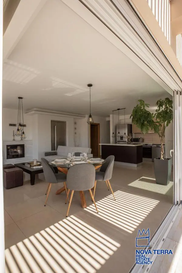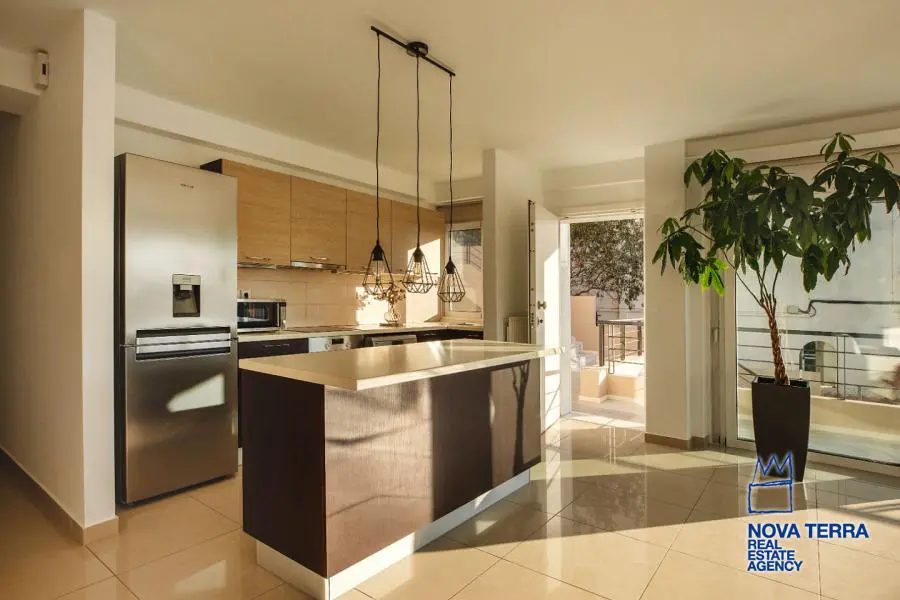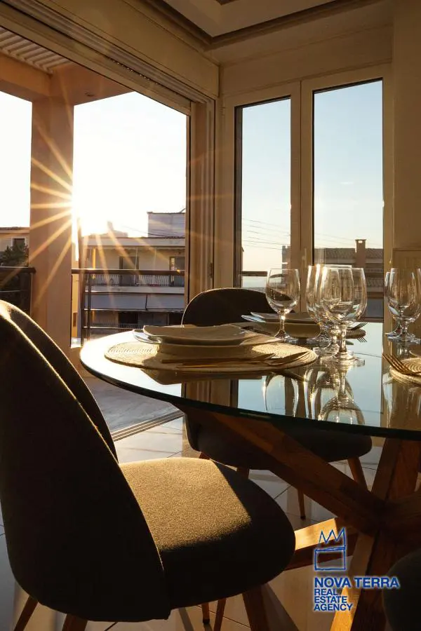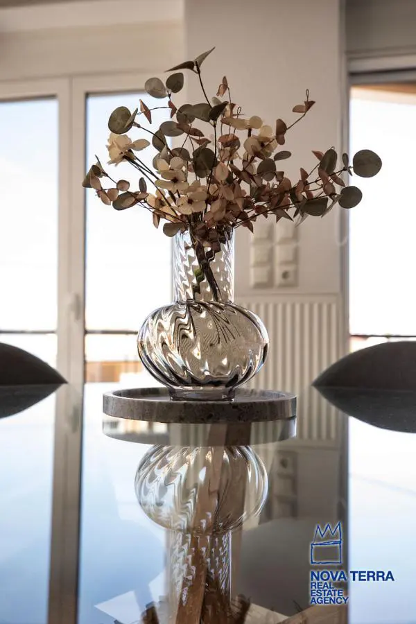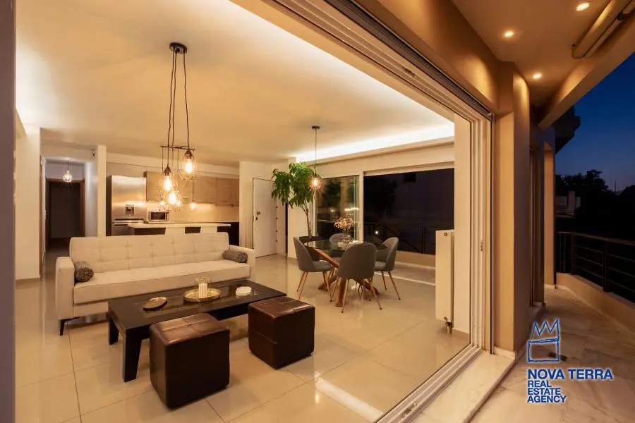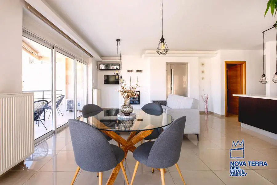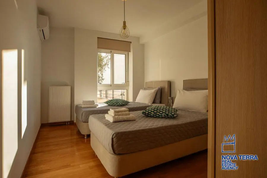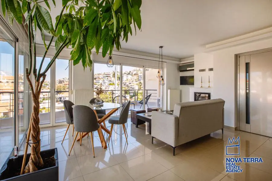 VOULA - PANORAMA, Single Floor Apartment,, Rental, 110 sq.m, year built 2011, 2 rooms, 1st, View: Partial Seaview, Various Characteristics: Balcony, Bath (2), Escalator, Fire Place, Furnished, Kitchen, Living room, Refurbished, Store Room, Toilet, Master Bedrooms: 1 Master Bedroom, Flooring: Murble, Heating: Air Conditioning, Autonomous Heating-central systm, Access road, Aluminium panels, Bright, Double-glazing, Facade, From Side to Side, Luxury, Minimal, Newly built, Painted, Residential area, Satellite TV, Screens, Security Alarm, Security Door, Solar Heating, Tents, In perfect condition: : Parking area: Energy class: A. property ID: 35418, www.nova-terra.gr