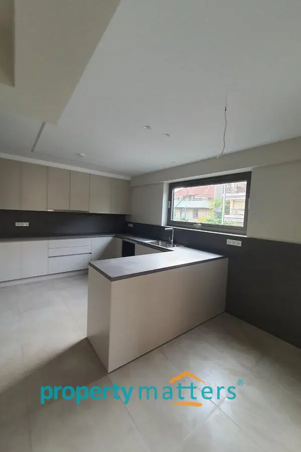 A Modern and Luxurious Rental Property The newly built apartment located in Pefki is a modern and luxurious property for rent, constructed in 2025. It is a 130 m² floor apartment situated on the second floor of an elegant building, distinguished by its brightness and functional layout. The interior of the apartment includes a total of three rooms (one master bedroom), a spacious living room, and an additional guest WC. The kitchen is open-plan with the living area and features a breakfast bar, offering a modern, airy feel to the space (built-in electrical appliances are included, except for the refrigerator). Heating is individual with a heat pump, and air conditioning is installed in all areas, ensuring comfort throughout the year. The property is fully equipped with modern amenities, such as electric shutters, external thermal insulation, armored security door, video intercom with camera, and satellite TV. It also includes a storage room, parking space (under pilotis), elevator, and electric awnings on the balconies. The apartment’s energy efficiency class is A+, ensuring low consumption and energy efficiency. Additionally, the apartment is dual aspect (cross-ventilated), filled with natural light and good airflow, while the balconies offer pleasant views and an ideal space for relaxation. The location in Pefki is highly privileged—just an 8-minute walk from the “KAT” train station. The area is known for its green surroundings, tranquility, and family-friendly atmosphere, while also being close to public transport, making access to central Athens convenient. Nearby, there are shops, schools, parks, and cafés, making the property ideal for families as well as professionals seeking a balance of comfort and practicality. Overall, this is a super-luxurious, bright, and spacious apartment, ideal for those who wish to live in a quiet, modern environment with all contemporary comforts. The combination of high construction quality, energy efficiency, and excellent location makes this property an outstanding choice in the Pefki market.
