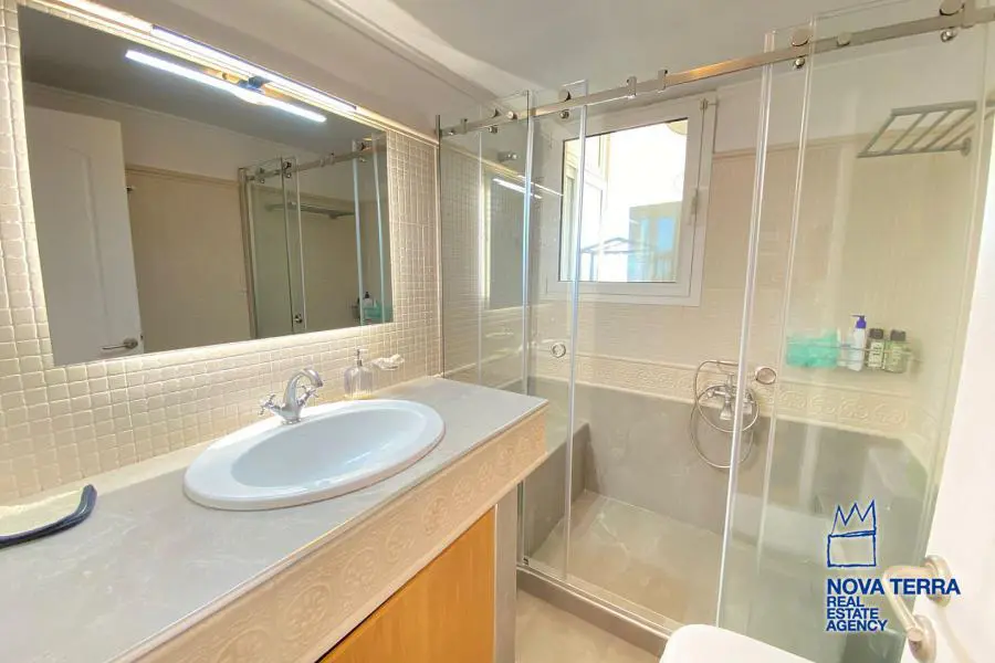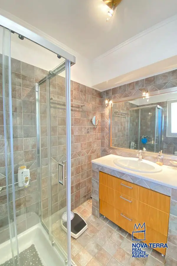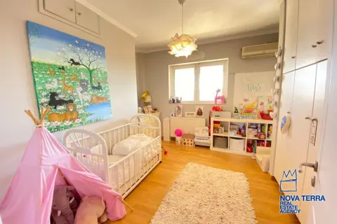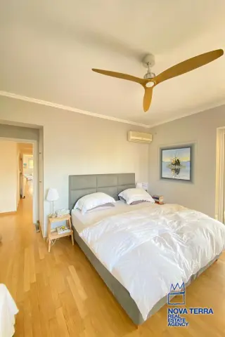 VARKIZA - Single Floor Apartment for Sale in VARKIZA, 137 sq.m, built in 2000, renovated in 2018. This apartment features 3 rooms on the 3rd floor with various characteristics including a balcony, 2 bathrooms, escalator, fire place, kitchen, living room, refurbished store room, and 1 master bedroom. The flooring is wooden and heating options include air conditioning and autonomous oil heating. Other features include access road, aluminium panels, bright corner block, luxury finishes, painted walls, security door, solar heating, and is in perfect condition. Pets allowed, satellite dish, parking area, and energy class B. Property ID: 52638. Visit www.nova-terra.gr for more information.