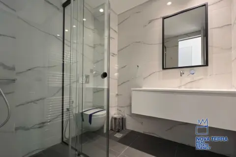 VOULA - PANORAMA, Single Floor Apartment,, Sale, 154 sq.m, year built 2022, 3 rooms, 1st, Various Characteristics: Balcony, Bath (3), Escalator, Kitchen, Living room, Store Room, Toilet, Master Bedrooms: 3 Master Bedrooms, Flooring: Slate, Wooden floor, Heating: Autonomous Heating (auto-system), Access road, Bright, Double-glazing, Electric Roller Windows, Facade, From Side to Side, Loading dock, Luxury, Maid Room, Minimal, Newly built, Painted, Screens, Security Alarm, Security Door, Solar Heating, In perfect condition: : : Parking area: Garage, Energy class: A. property ID: 48123, www.nova-terra.gr