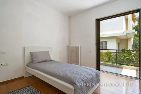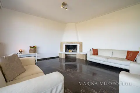 VOULA - Pigadakia, a 2nd floor apartment, 145 sq m, at the border with Vouliagmeni with fabulous sea view. Spacious reception - dining area with fireplace, separate renovated kitchen with electrical appliances, 3 bedrooms, 1 study space, 2 renovated bathrooms and large verandas with beautiful views. The apartment features oak floors in the bedrooms and marble in the rest areas, oil autonomous heating (also per room), 3 A/Cs, double glazing in the living room, 2 storage lofts above the bathrooms and a 2 sqm storage room on the ground floor, parking space in the yard. It is part of a well-maintained, 4-story building with a total of 4 properties, an elevator and beautiful garden. Zone price 2400€. Maintenance expenses aprox. 40€. This elegant residence offers open sea views and a tranquil, elevated setting with direct access to a pine-covered hill, providing a unique sense of countryside living just 850 meters from the coastline. Distance 1.3 km from the organized beach of Apollon Beach Hotel in Kavouri, 2 km from Voula's center, 3 km from Vouliagmeni and Varkiza, 5 km from the shopping area of Glyfada and 18 km from the intern airport.