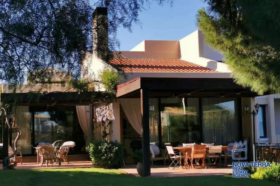 VARI, House,, Sale, 200 sq.m, on a plot of 2000 sq.m, year built 1996, 4 rooms, Ground Floor, 1st, Various Characteristics: Balcony, Bath (3), Fire Place, Furnished, Garden, Kitchen, Living room, Playroom, Swimming Pool, Flooring: Wooden floor, Heating: Air Conditioning, Autonomous Heating (auto-system), Αutonomous oil heating, Access road, Aluminium panels, Bright, Double-glazing, Facade, From Side to Side, Luxury, Night charge, Painted, Residential area, Screens, Security Door, Solar Heating, In perfect condition: : : Parking area: Parking, Energy class: Β. property ID: 51039, www.nova-terra.gr