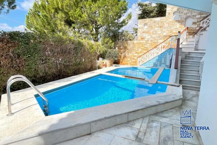 VOULA, House, 460 sq.m, on a plot of 550 sq.m, year built 1990, 8 rooms, Ground Floor, 1st, 2nd, View: Seaview, Unobstracted view, Various Characteristics: Balcony, Bath (6), Escalator, Fire Place (5), Garden, Playroom, Refurbished, Swimming Pool, Master Bedrooms: 2 Master Bedrooms, Flooring: Murble, Heating: Air Conditioning (5), Autonomous Heating, , Attic, BBQ, Boiler, Bright, Corner Block, Double-glazing, From Side to Side, Jacuzzi, Luxury, Maid Room, Satellite TV, Security Alarm, Security Door, Tents, : : : : Parking area: Garage (5), Energy class: A, property ID: 4552, www.nova-terra.gr