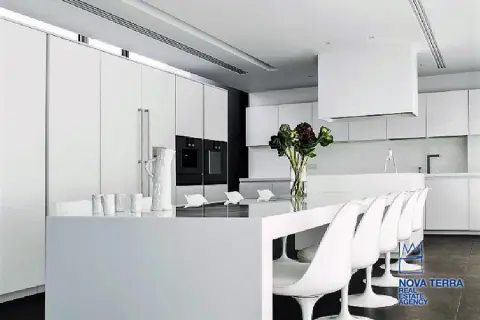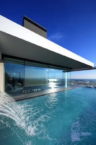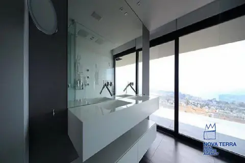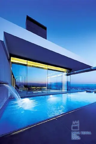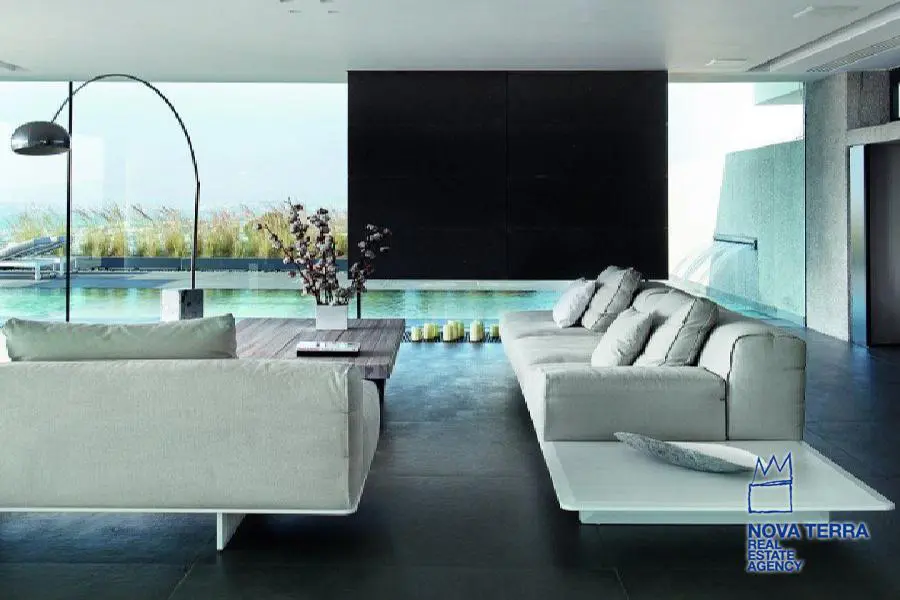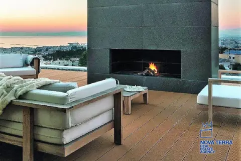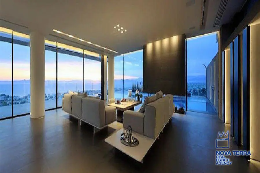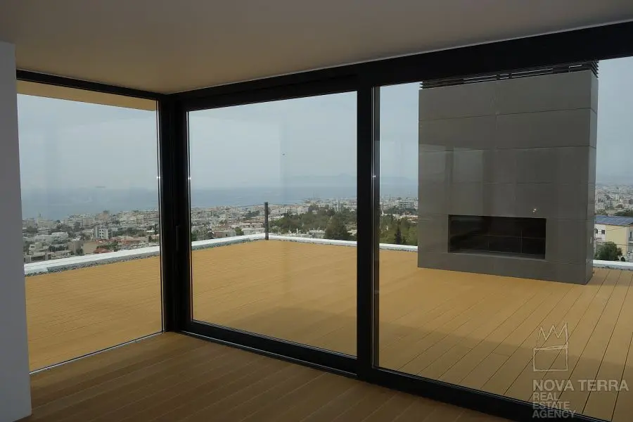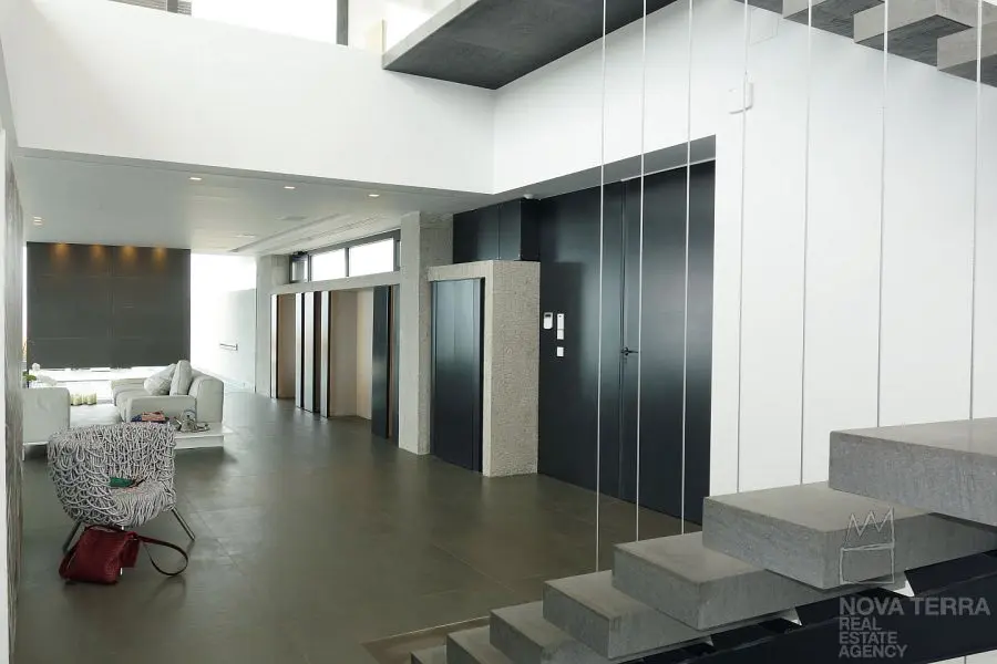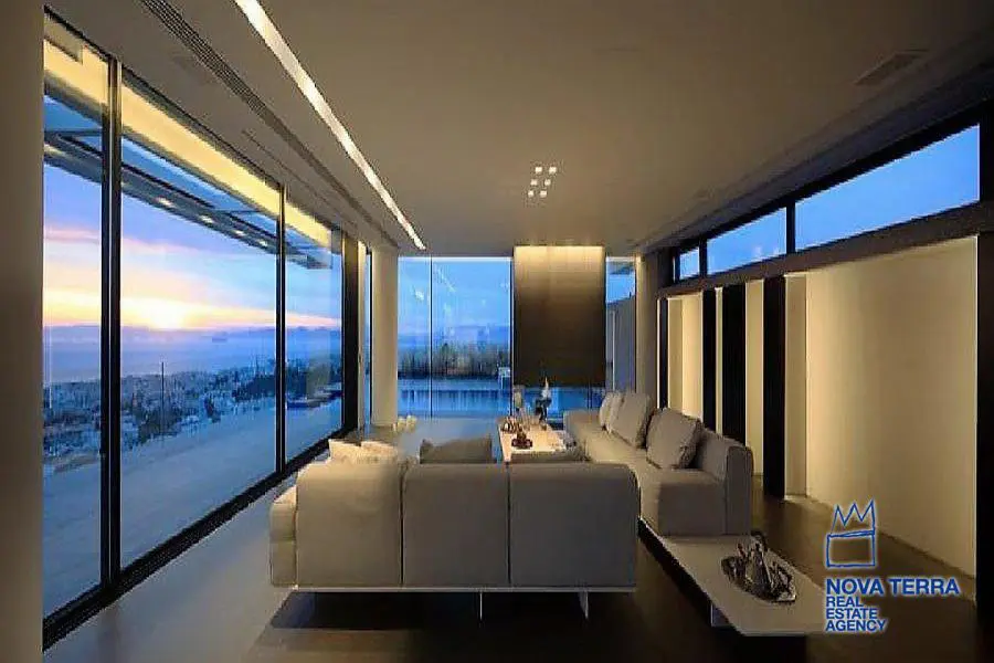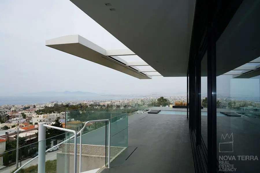 ALIMOS, House, 640 sq.m, on a plot of 600 sq.m, year built 2013, 5 rooms, Ground Floor, 1st, 2nd, View: Seaview, Unobstracted view, Various Characteristics: Balcony, Bath (5), Escalator, Fire Place (2), Garden, Playroom, Store Room, Swimming Pool, Toilet (3), Master Bedrooms: 5 Master Bedrooms, Flooring: Tile, Heating: Air Conditioning, Floor heating, , Attic, Computer Terminal Ready, Electric Roller Windows, From Side to Side, Gym, Luxury, Minimal, Newly built, Rooftop use, Satellite TV, Sauna, Security Alarm, Security Door, Tents, : : : : Parking area: Garage (4), property ID: 30870, www.nova-terra.gr
