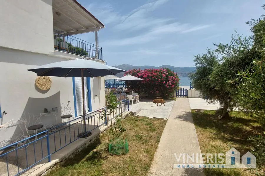 Nestled in the idyllic suburbs of Lixouri, the second-largest town of Kefalonia, this unique seaside detached house spans a total area of 157 square meters, situated on a 311.75 square meter plot. The property flawlessly combines authentic island architecture with modern amenities, offering an ideal opportunity for an escape to one of Kefalonia's most picturesque locations. The house is divided into two levels, with the first level being an independent home, while the upper level features an apartment, making it versatile for both personal use and tourist rental. The ground floor house, with its own entrance from the main road, includes an open-plan kitchen, living, and dining area, three bedrooms, and two bathrooms. Large glass doors and windows provide direct access to the garden, where olive trees, lush greenery, and vibrant flowers create a serene oasis with uninterrupted sea views. In the garden, just outside the kitchen entrance, there is a covered veranda with a BBQ area and an outdoor shower. The upper apartment, accessed from the courtyard, features an open-plan kitchen and living area, two bedrooms, and one bathroom. The apartment stands out for its spacious covered balcony, offering enchanting views of the pedestrian walkway and the beach, with the turquoise waters of the Lixouri-Argostoli bay stretching out before it. The property is in a prime location, just steps away from Lixouri’s commercial hub and close to the famous beaches of the Palliki Peninsula. Petanoi Beach, with its white stone and crystal-clear waters, and the iconic red sand beach of Xi are easily accessible. With its exceptional location right by the sea and the potential for both permanent residence and tourist use, this detached house represents a top investment opportunity in the heart of Kefalonia.