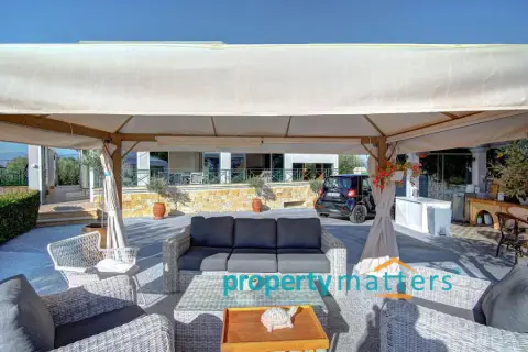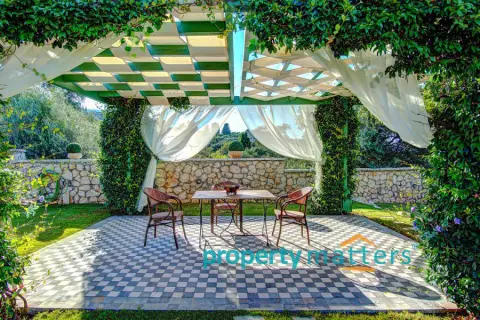 Located on the hillside overlooking San Stefano, the estate is a charming villa boasting picturesque landscaped gardens, a stunning private pool area, and mesmerizing sea views stretching towards the South of Corfu and the Albanian coastline. Situated on the sought-after North East coast of Corfu, the villa offers a serene haven where guests can unwind and luxuriate in comfort. Accommodating up to 10 guests, the villa features spacious and airy interiors thoughtfully designed for relaxation. The accommodation comprises 8 bedrooms, each with its own ensuite bathroom, providing utmost privacy and convenience. An elegant reception room welcomes guests, while a generously sized and well-equipped kitchen/dining room caters to culinary needs and gatherings. Outside, the villa boasts a plethora of amenities designed to enhance the outdoor living experience. The inviting pool area is surrounded by lush gardens, creating a tranquil oasis for sunbathing and refreshing dips. Two covered areas provide ample space for al fresco dining and lounging, allowing guests to savor meals and moments in the open air. Additionally, a large terrace spans the entire length of the villa, offering breathtaking panoramic views of the surrounding landscape and coastline. Convenience is paramount at the villa, with ample parking available and gated access ensuring security and peace of mind for guests throughout their stay. Whether lounging by the pool, dining under the stars, or simply soaking in the stunning vistas, the villa provides a delightful retreat for those seeking relaxation and rejuvenation amidst the natural beauty of Corfu’s North East coast. San Stephanos (Agios Stefanos) which is approximately 12 minutes walk or a few minutes drive away has a delightful selection of excellent tavernas, 2 popular bars, a couple of small supermarkets and several boat hire companies. The beaches and Tavernas of Avlaki and Kerasia are close by and Kassiopi the main local Town is about 10 minutes drive. The charming village of Kalami made famous by the Durrell family is just a short drive or boat ride away together with the beaches and tavernas of Kaloura, Agni and Kaminaki. Our latest secret is Glyfa and especially their Garlic Rice and Prawns! Corfu Town and the airport are about 45 Kms away. Hiring taxis is easy but hiring a car enables you to explore the island. There are wonderful places to visit including the ancient village of Old Perithia where the islanders would hide from maurauding pirates or the tiny monastery on the summit of Mount Pantokrator. You can hire a small boat and explore the coastline or just simply drop anchor in one of the many small coves and enjoy swimming or snorkelling in the crystal clear waters. The majority of beachside tavernas have jetties where you can moor for lunch. There are also several water taxis that can take you to lunch or for a romantic dinner. If you have your Power Boat Licence you can hire a more powerful boat and take a trip to Corfu Town or further afield or even to the mainland of Greece. There is also a small sailing school at Avlaki where you can learn to sail or hire a wind surfer or paddle board. The North East Coast is renowned for its scenery and there are many wonderful coastal or hillside paths where you can enjoy the views and wonderful plants and fauna.