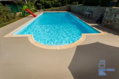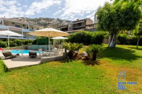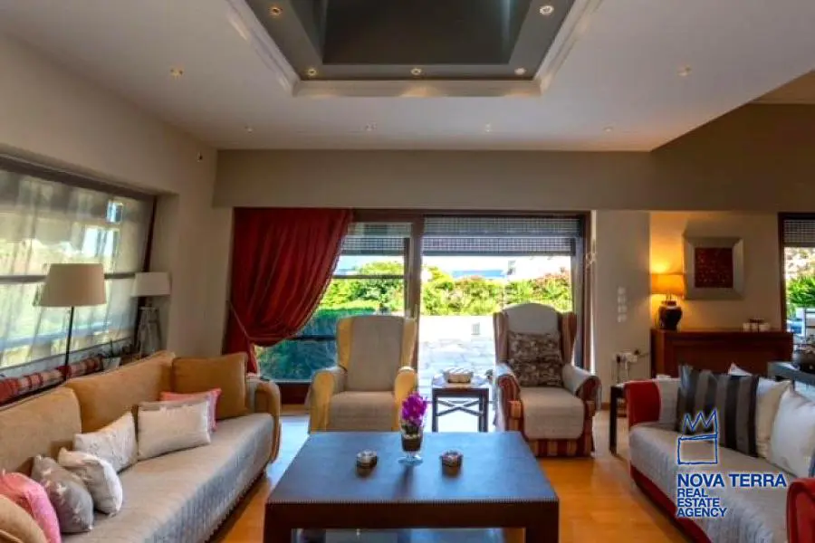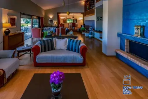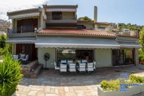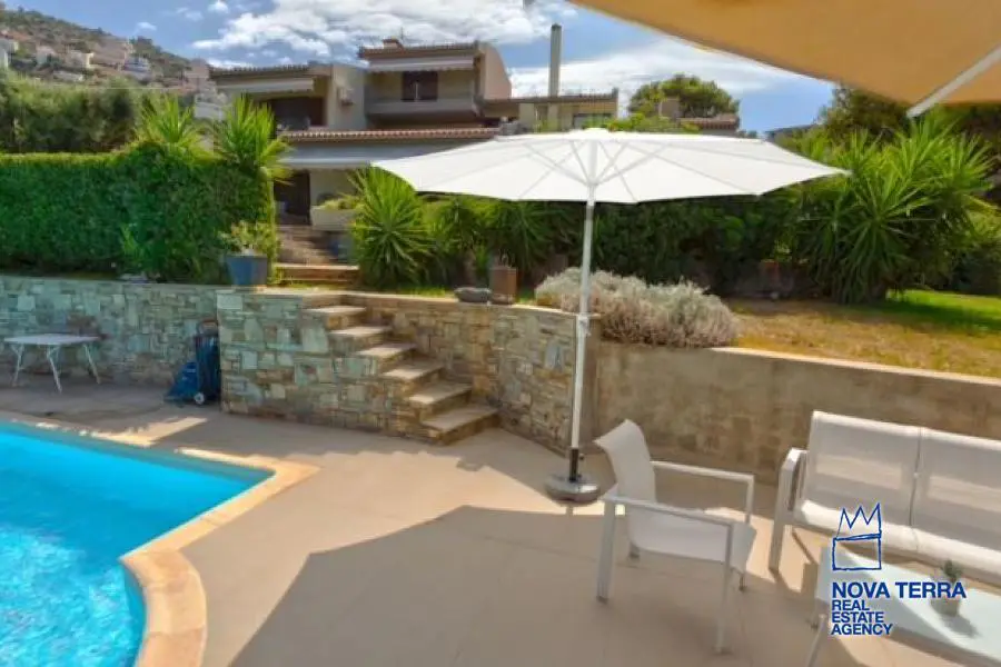 SARONIDA, House, 564 sq.m, on a plot of 1725 sq.m, year built 1982, 5 rooms, Semibasement, Ground Floor, 1st, View: Mountain view, Seaview, Unobstracted view, Various Characteristics: Balcony, Bath (4), Fire Place, Kitchen, Living room, Refurbished, Store Room, Swimming Pool, Flooring: Wooden floor, Heating: Air Conditioning, Autonomous Gas Heating, Autonomous Heating-central systm, Access road, Bright, Facade, From Side to Side, Luxury, Painted, Residential area, Security Door, In perfect condition: : : Parking area: Parking (2), Energy class: D, property ID: 47488, www.nova-terra.gr