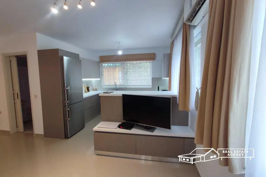 Saronida, just 600 meters from the center and the beach, on a quiet street, a renovated detached house of 160 sqm, ground floor and 1st floor, built on a plot of 768 sqm is available for sale. It consists of 2 apartments that communicate with an internal staircase, but which can also operate independently if someone wishes so. Each floor has a living room with an open-plan kitchen, 2 bedrooms and a bathroom. The house has air conditioning in all areas, an energy fireplace in the living room on the 1st floor, double glazing with electric shutters, solar panels, a large independent storage room as well as a closed garage. The garden is very large and has space for a swimming pool. For more info: +30 6932 746491, website: www.merryland.com.gr, Email: [email protected], Id: 16173. The location on the map is indicative