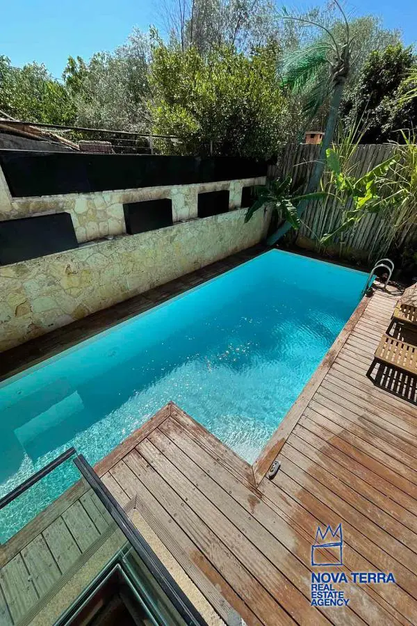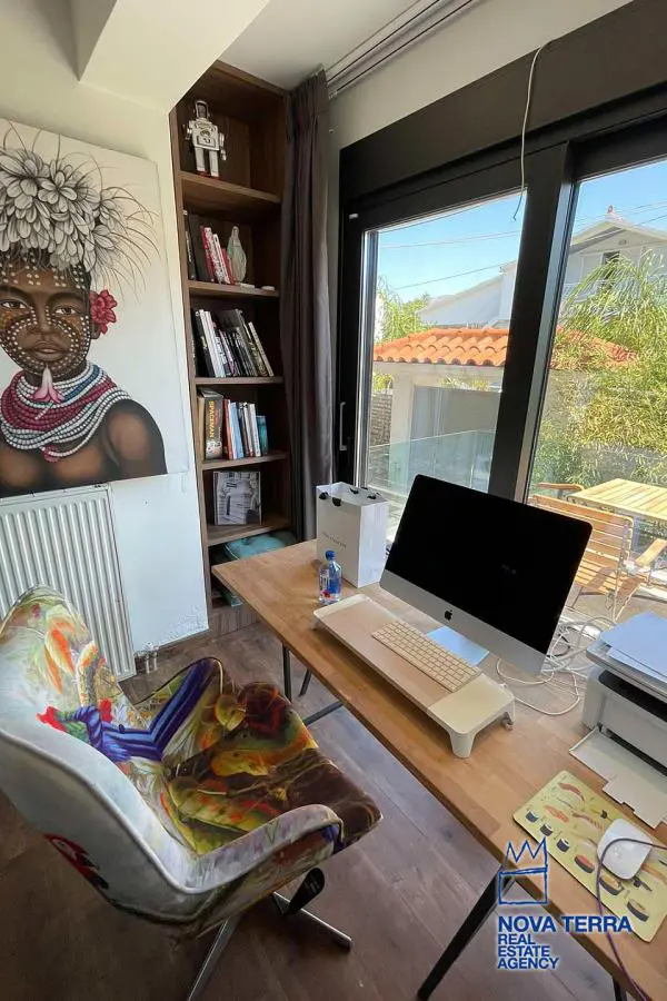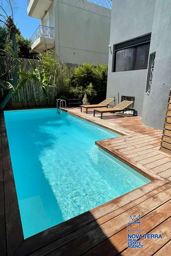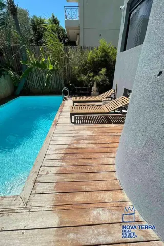 VARKIZA - VARKIZA, House, 300 sq.m, on a plot of 250 sq.m, year built 2006, renovated in 2020, 3 rooms, Ground Floor, 1st, 2nd, 3rd, View: Unobstracted view, Various Characteristics: Balcony, Bath (3), Fire Place, Garden, Kitchen, Living room, Playroom, Refurbished, Store Room, Swimming Pool, Flooring: Wooden floor, Heating: Air Conditioning, Αutonomous oil heating, Access road, Aluminium panels, BBQ, Bright, Double-glazing, Electric Roller Windows, Luxury, Minimal, Newly built, Painted, Residential area, Screens, Security Alarm, Security Door, Solar Heating, In perfect condition: : : : Parking area: Parking, Energy class: A, property ID: 46834, www.nova-terra.gr