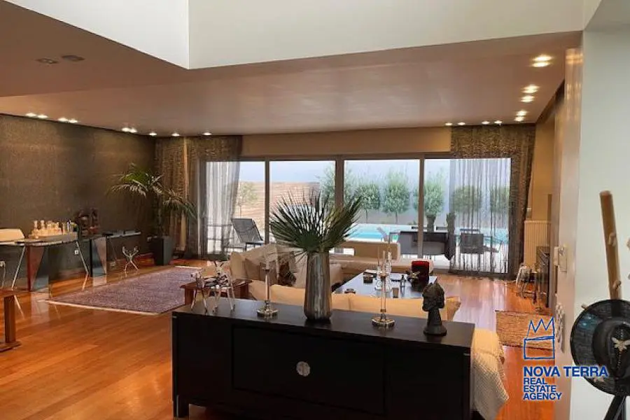 VARKIZA - VARKIZA, House,, Sale, 430 sq.m, on a plot of 400 sq.m, year built 2008, 4 rooms, Basement, Ground Floor, 1st, Various Characteristics: Balcony, Bath (4), Escalator, Fire Place, Kitchen, Living room, Playroom, Store Room, Swimming Pool, Master Bedrooms: 2 Master Bedrooms, Flooring: Wooden floor, Heating: Air Conditioning, Αutonomous oil heating, Access road, Aluminium panels, Bright, Double-glazing, From Side to Side, Jacuzzi, Luxury, Minimal, Night charge, Painted, Residential area, Security Alarm, Security Door, Solar Heating, Tents, In perfect condition: : Parking area: Garage (3), Energy class: Β. property ID: 49839, www.nova-terra.gr