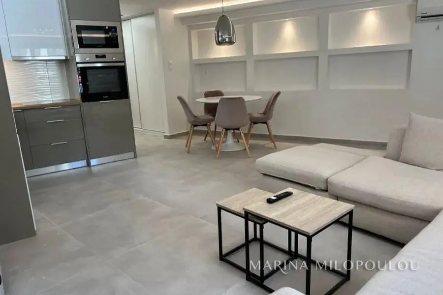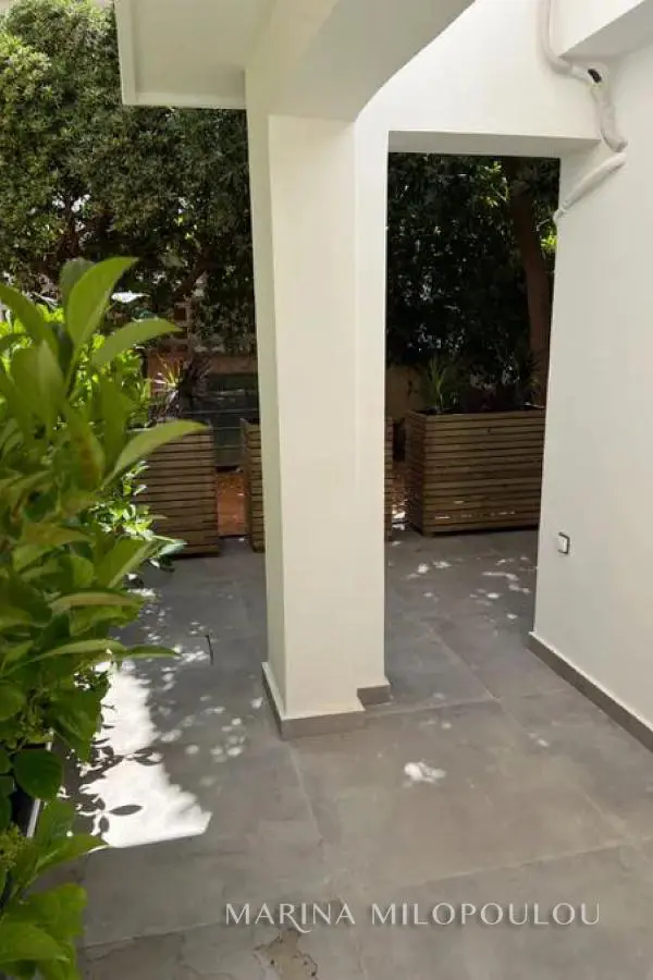 VOULA, independent ground floor detached house, renovated and furnished, 60 sqm, at the back of an apartment building, with garden. East orientation. It consists of a single lining area - dining area, kitchen with electrical appliances, 1 bedroom and 1 bathroom, veranda overlooking the garden. It features a security door, screens, electric shutters, hidden lighting, A/Cs, security alarm, storage. Maintenance expenses 15€ aprox. Zone price €2800. Corner building, 100 meters from the local market, 750 meters from a sandy public beach, 900m from the center of Voula, 1.3 km from Voula's organized beach and 20 km from the intern. airport.