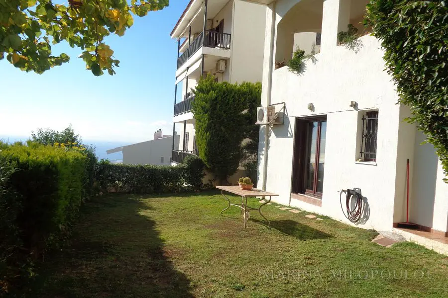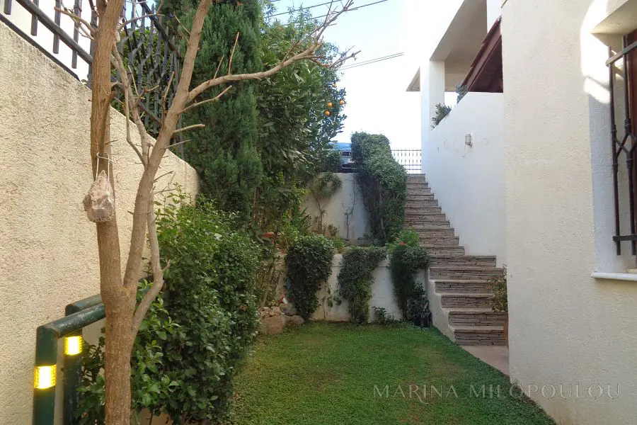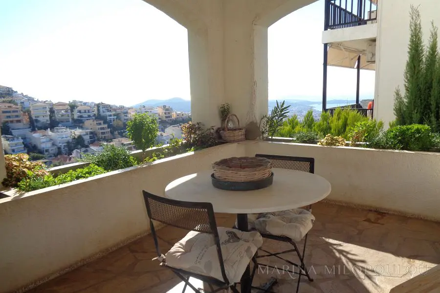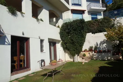 VOULA - Panorama, a detached house with a total area of 315 sqm within a plot of 385 sqm, with panoramic sea view. It consists of an independent ground floor apartment 85sqm which has a living room, separate comfortable kitchen, 1 bedroom, 1 bathroom, with exit to the garden. Maisonette of 210sqm 1st - 2nd floor with a room of 20sqm, which has a large reception - dining area, 4 comfortable bedrooms - 2 of them master- 1 additional bathroom, large terraces, ground floor parking. The residence features 5 parking spaces, autonomous oil heating, 4 A/Cs in the bedrooms and the living room, storage space. Excellent property location at an altitude point with a unique sea view from all levels of the house. Zone price 2500 €. Distance from local market 1,2 km, from Voula's square and the sea 3km and 25,5 km from the intern. airport