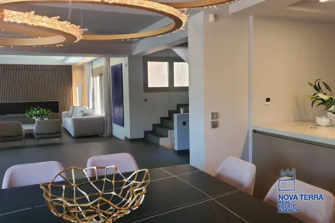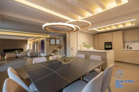 VOULA - PIGADAKIA, House,, Sale, 400 sq.m, on a plot of 560 sq.m, year built 2019, 5 rooms, Semibasement, Ground Floor, 1st, Various Characteristics: Balcony, Bath (5), Escalator, Fire Place (2), Furnished, Garden, Kitchen (2), Living room, Playroom, Store Room, Swimming Pool, Toilet, Master Bedrooms: 1 Master Bedroom, Flooring: Wooden floor, Heating: Air Conditioning, Autonomous Heat oil, Access road, Aluminium panels, Attic, Bright, Double-glazing, Facade, From Side to Side, Luxury, Maid Room, Minimal, Painted, pets allowed, Residential area, Screens, Security Alarm, Security Door, Solar Heating, Tents, Weekend Residence, In perfect condition: Pets allowed: Satellite dish: For investment: Parking area: Parking, Energy class: A. property ID: 47238, www.nova-terra.gr