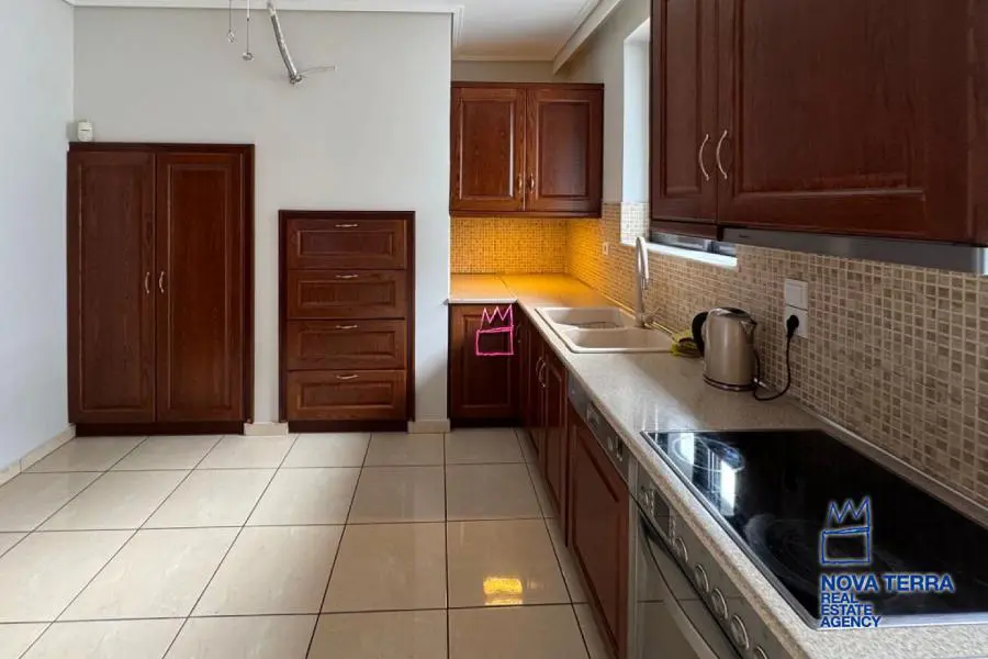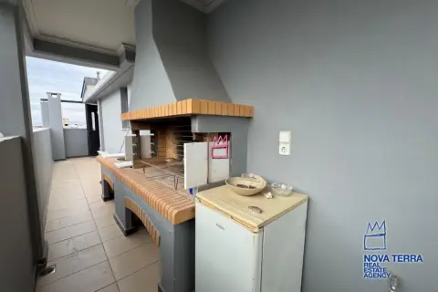 Luxury Golf Duplex/Triplex Apartment for Rent in Glyfada with Mountain and Sea Views This spacious 143 sq.m apartment was built in 2004 and features 3 rooms on the 2nd and 3rd floors. It boasts various characteristics such as balconies, 2 bathrooms, an escalator, fire place, kitchen, living room, and a store room. The flooring includes tile and wooden floors, with heating provided by air conditioning and autonomous gas heating. Other features of this property include access road, aluminium panels, BBQ area, bright and double-glazed windows, facade, luxury finishes, night charge lighting, painted walls, security alarm, security door, solar heating, and is in perfect condition. The property also includes a garage parking area and has an energy class rating of C. For more information on this property, visit www.nova-terra.gr and reference property ID 52744.