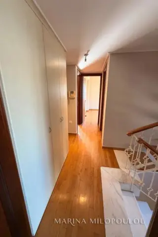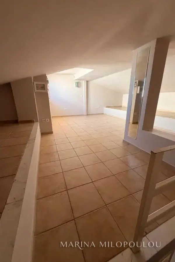 VARI-Miladeza, a 3 level attached Maisonette, basement-ground floor-1st floor, total 240sqm, West facing. - Elavated ground floor (accessed by 8 steps), open plan reception-dining area with fireplace and kitchen and verandas -1st floor, 3 bedrooms (1 master) and 1 additional bathroom and verandas - Semi-Basement, playroom with fireplace and 1 wc. It features a security door, autonomous oil heating, 2 fireplace, 2 A/Cs, solar water heater, oak floor in the bedrooms anf tile in the rest areas, double glazing, electric shutters, security alarm, underground parking space, storage room. No maintenance expenses Quiet residential neighborhood with a countryside feel and small detached houses, 500 m from Evelpidon Avenue, 800 m from the center of Vari, 2.5 km from "Yabanaki" organized Beach and Varkiza, 5.5 km from Vari'a private schools, and 17 km from the intern.airport.