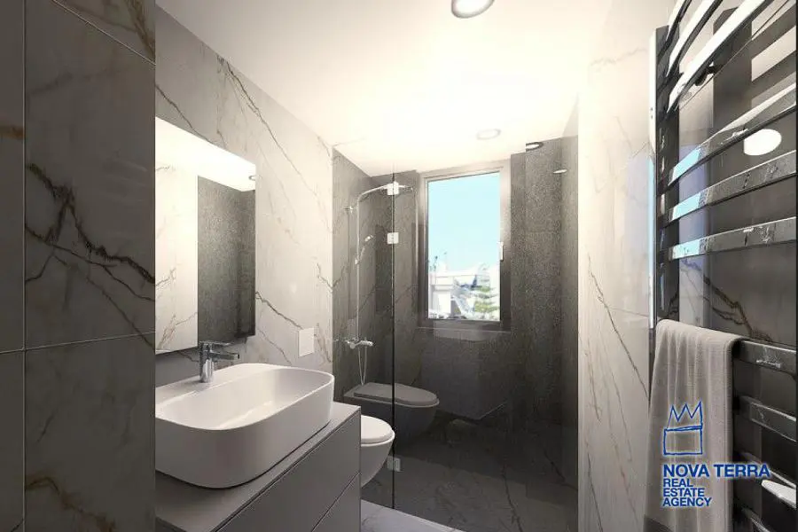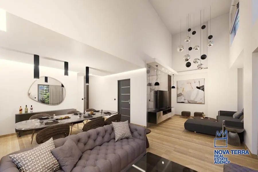 ALIMOS - KALAMAKI KATO, Duplex / Triplex Apartment,, Sale, 144 sq.m, year built 2025, 4 rooms, 3rd, 4th, View: Various Characteristics: Balcony, Bath (2), Escalator, Fire Place, Kitchen, Living room, Store Room, Flooring: Wooden floor, Heating: Fan coil, Floor heating, Heating pump, Access road, Aluminium panels, Bright, Corner Block, Double-glazing, From Side to Side, Luxury, Night charge, Painted, Residential area, Security Door, Solar Heating, In perfect condition: Pets allowed: Parking area: Garage (2), Energy class: A. property ID: 52515, www.nova-terra.gr