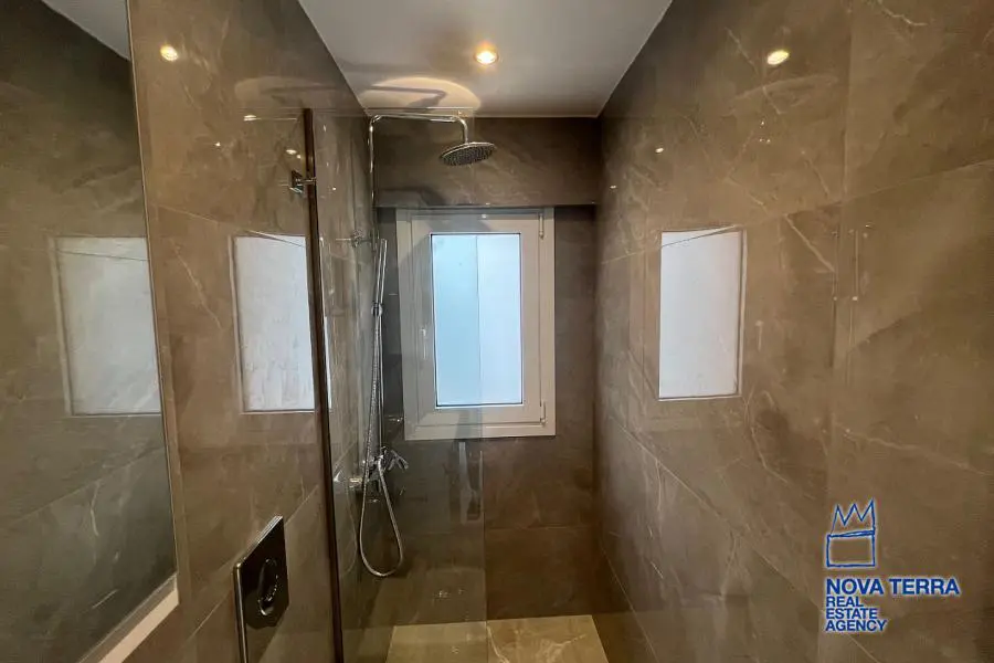 GLYFADA - KENTRO, Duplex / Triplex Apartment,, Sale, 88 sq.m, on a plot of 800 sq.m, year built 2022, 2 rooms, 1st, 2nd, Various Characteristics: Balcony, Bath, Escalator, Fire Place, Garden, Kitchen, Living room, Store Room, Toilet, Heating: Air Conditioning, Autonomous Gas Heating, Autonomous Heating-central systm, Aluminium panels, Bright, Double-glazing, Facade, Luxury, Minimal, Newly built, Painted, Security Door, In perfect condition: : : : Parking area: Garage, Energy class: A. property ID: 49926, www.nova-terra.gr