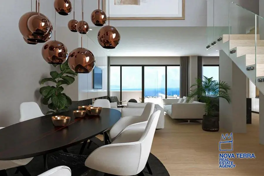 GLYFADA - TERPSITHEA, Duplex / Triplex Apartment,, Sale, 137 sq.m, year built 2023, 3 rooms, 4th, 5th, Various Characteristics: Balcony, Bath (2), Escalator, Fire Place, Kitchen, Living room, Store Room, Toilet, Heating: Air Conditioning, Autonomous Heating-central systm, Access road, Aluminium panels, Bright, Double-glazing, Facade, From Side to Side, Luxury, Minimal, Newly built, Painted, Residential area, Screens, Security Door, Solar Heating, In perfect condition: : : : Parking area: Garage, Energy class: A. property ID: 50328, www.nova-terra.gr