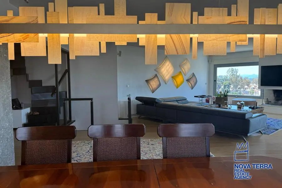 GLYFADA - KENTRO, Duplex / Triplex Apartment,, Sale, 250 sq.m, on a plot of 600 sq.m, year built 2010, renovated in 2023, 3 rooms, 3rd, 4th, 5th, View: Seaview, Unobstracted view, Various Characteristics: Balcony, Bath (4), Escalator, Fire Place, Furnished, Kitchen, Living room, Penthouse, Refurbished, Store Room, Swimming Pool, Toilet, Master Bedrooms: 3 Master Bedrooms, Flooring: Wooden floor, Heating: Air Conditioning, Autonomous Heat oil, Access road, Aluminium panels, Bright, Corner Block, Double-glazing, Electric Roller Windows, Facade, From Side to Side, Luxury, Night charge, Painted, Residential area, Screens, Security Alarm, Security Door, Solar Heating, Tents, Weekend Residence, In perfect condition: : : Parking area: Garage (2), Energy class: Β. property ID: 51078, www.nova-terra.gr
