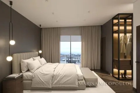 GLYFADA - Evryali, a newlybuilt, corner Μaisonette, 194 sqm on the 3rd - 4th (4th-5th elevation) with private pool and sea view and to the Hellinikon park. Southwest orientation. - 4th floor, reception - dining area (with gas fireplace), open plan kitchen, 2 master bedrooms, 1 wc and 2 verandas. - Attic, (accesed only by the internal staircase) 2 master bedrooms - 1 with walk-in closet. Direct access to the terrace with the 10 sqm pool and sea and mountain view. It is part of a 5-storey corner building with a total of 8 properties, energy class (A++) which has photovoltaic panels. The apartment features a heat pump, fan coil, underfloor heating, triple energy solar panels for hot water supply, high-end thermal facade and heavy-duty thermal break frames with triple glazing, "Smart Home" technology, fire safety system, security alarm and cameras. This apartment also comes with 2 basement parking spaces and a storage room. The materials of the interior construction are configured according to the buyer's taste and the apartment will be delivered 2 months after purchase. Zone price 2250€. It is located on a main road, 80 meters from Vouliagmenis Avenue and a local market, 800 meters from the Elliniko metro station, 1.3 km from the current entrance to the Metropolitan Park, 2.5 km from Glyfada beach, 3 km from the shopping area of Glyfada and 24 km from the intern. airport. Εstimated delivery 07/2025.
