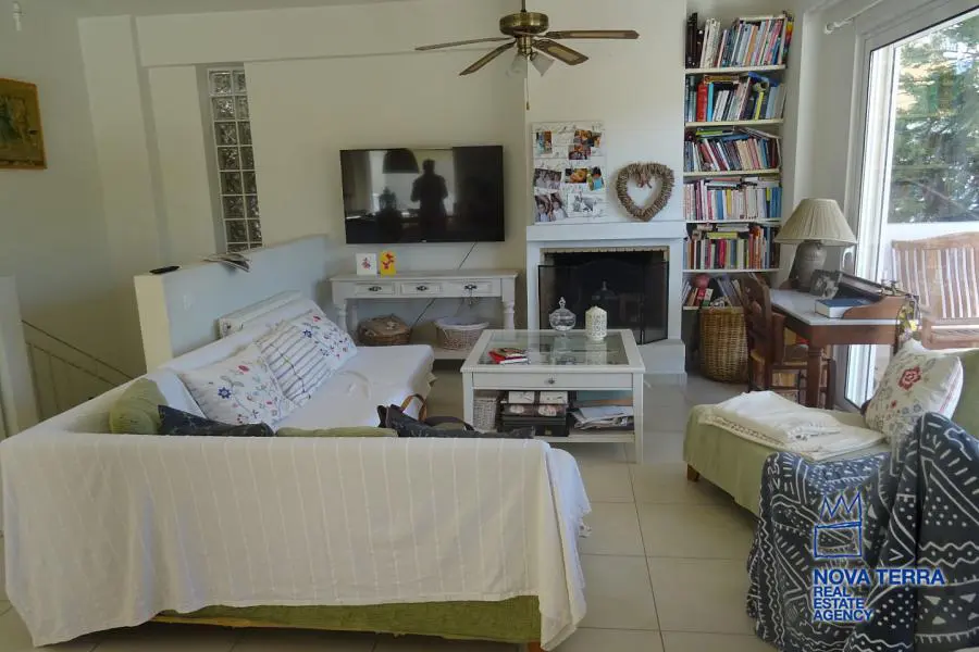 VARI - MILADEZA, Duplex / Triplex Apartment,, Sale, 155 sq.m, on a plot of 400 sq.m, year built 2014, 4 rooms, Ground Floor, 1st, Various Characteristics: Balcony, Bath (2), Escalator, Fire Place, Kitchen, Living room, Refurbished, Flooring: Tile, Heating: Air Conditioning, Autonomous Heating-central systm, Access road, Bright, Double-glazing, Facade, From Side to Side, Luxury, pets allowed, Satellite TV, Security Alarm, Security Door, Solar Heating, Tents, In perfect condition: : : : Energy class: B+. property ID: 44076, www.nova-terra.gr