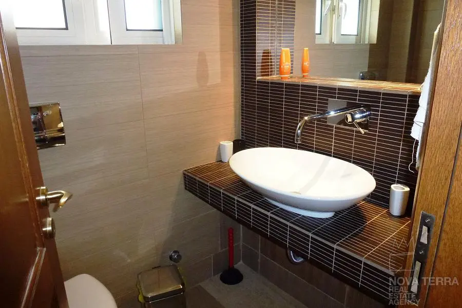 VARKIZA, Duplex / Triplex Apartment, 230 sq.m, on a plot of 545 sq.m, year built 2009, 3 rooms, Ground Floor, 1st, 2nd, View: Seaview, Various Characteristics: Bath (3), Escalator, Fire Place, Garden, Playroom, Store Room, Swimming Pool, Toilet, Master Bedrooms: 1 Master Bedroom, Flooring: Tile, Heating: Air Conditioning, Autonomous Heating, , Boiler, Detached, From Side to Side, Jacuzzi, Luxury, Maid Room, Newly built, Satellite TV, Security Alarm, Security Door, Shower, Solar Heating, : : Parking area: Parking, property ID: 23378, www.nova-terra.gr