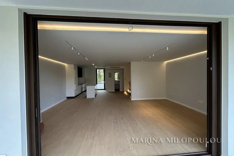 VOULA-Dikigorika, Renovated maisonette, 1st-2nd floor, 160sqm, with large verandas, southeast orientation. -1st floor, access by staircase, open plan reception-dining room, open plan kitchen (owner's choice of counter), 1 utility room and 1 wc. -2nd floor, 3 bedrooms, 1 master and 1 additional bathroom It has a security door, autonomous oil heating, central air conditioning for cooling, pre-installation for a fireplace, solar water heater, double glazing, oak flooring throughout, pre-installation of an alarm, storage room, 1 open parking space. WITHOUT ELEVATOR Price zone 2600€ On a quiet street, it is part of a building of 9 apartments, at a distance of 900m from the center of Voula, 1.6km from the B beach of the area, 6km from the marina of Vouliagmeni, 25km from Athens airport.