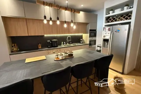 Voula-Pigadakia, a luxurious maisonette of 240 sqm, fully renovated in 2020, is available for sale. It consists of a ground floor, 1st floor, attic and playroom. It comprises a living room with energy fireplace and direct access to the garden, wc, kitchen with storage space and sitting area in the playroom, 4 bedrooms (one master with its own bathroom and jacuzzi at the attic) and another bathroom. The maisonette has autonomous heating with oil and air conditioning in all areas, oak floors, alarm system with cameras, aluminum frames with double glazing and electric shutters, security doors, elevator, garden and underground parking. For more info: +30 694477 2536, website: www.merryland.com.gr, Email: [email protected], Id: 15450