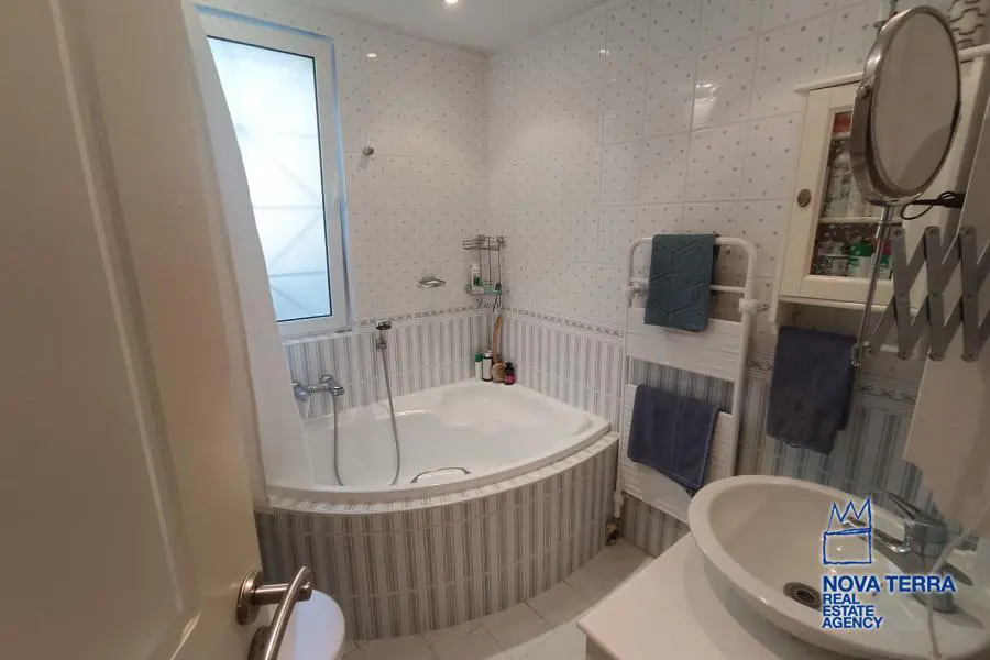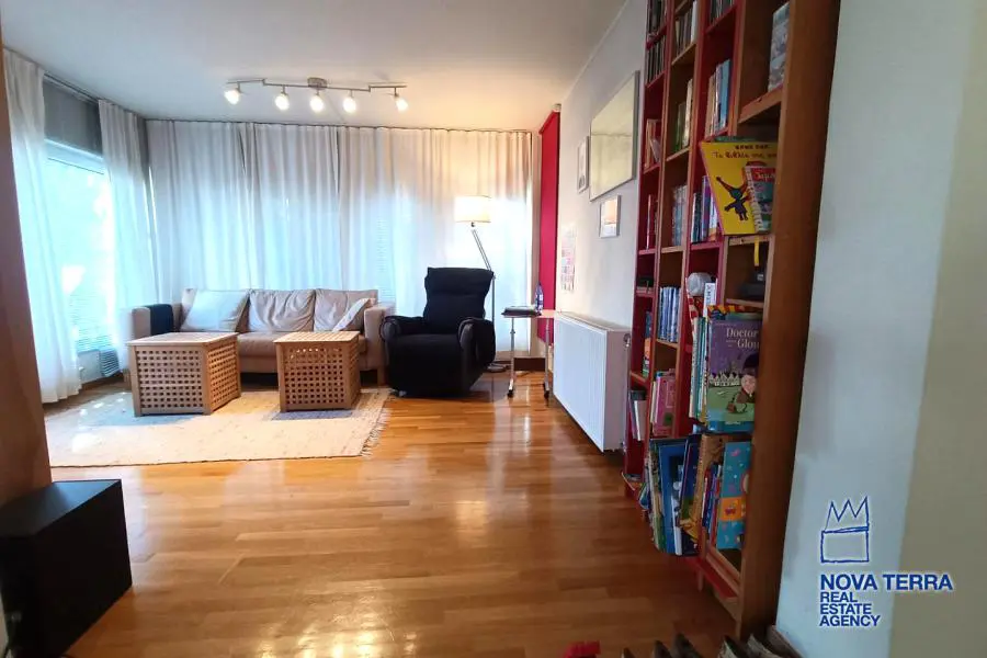 VOULA - KALYMNIOTIKA, Duplex / Triplex Apartment,, Sale, 166 sq.m, on a plot of 150 sq.m, year built 1994, 2 rooms, Semibasement, Ground Floor, Various Characteristics: Balcony, Bath (2), Escalator, Fire Place, Garden, Kitchen, Living room, Store Room, Flooring: Tile, Heating: Air Conditioning, Autonomous Heating (auto-system), Access road, Aluminium panels, Bright, From Side to Side, Luxury, Night charge, Painted, Residential area, Security Door, Solar Heating, In perfect condition: : Parking area: Parking, Energy class: C. property ID: 51206, www.nova-terra.gr