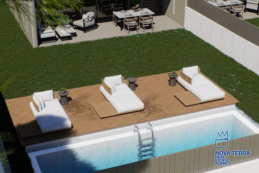 VOULA - DIKIGORIKA, Duplex / Triplex Apartment,, Sale, 180 sq.m, on a plot of 300 sq.m, year built 2024, 4 rooms, Basement, Ground Floor, 1st, Various Characteristics: Balcony, Bath (3), Fire Place, Garden, Kitchen, Living room, Playroom, Store Room, Swimming Pool, Toilet, Master Bedrooms: 1 Master Bedroom, Flooring: Wooden floor, Heating: Autonomous Heating-central systm, Floor heating, Access road, Aluminium panels, Bright, Double-glazing, From Side to Side, Luxury, Newly built, Night charge, Painted, Residential area, Security Door, In perfect condition: : : Parking area: Parking (2), Energy class: A. property ID: 50492, www.nova-terra.gr