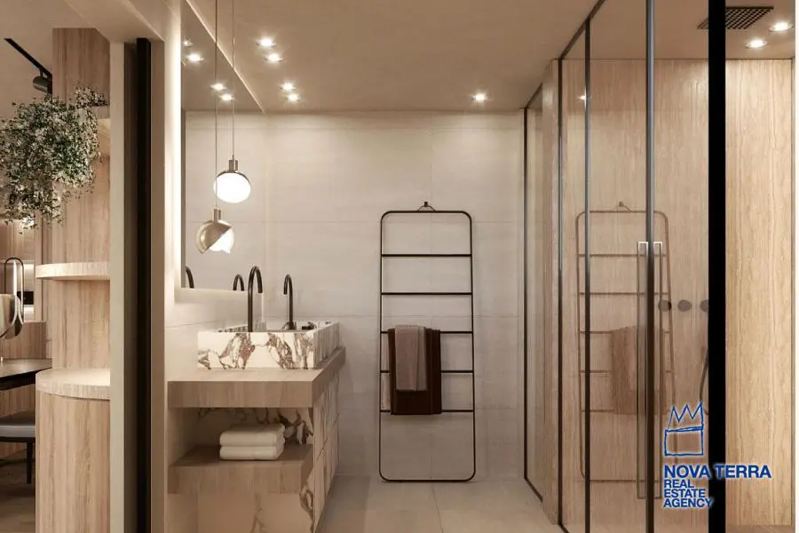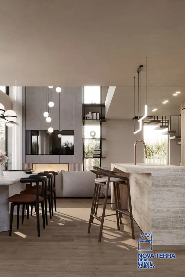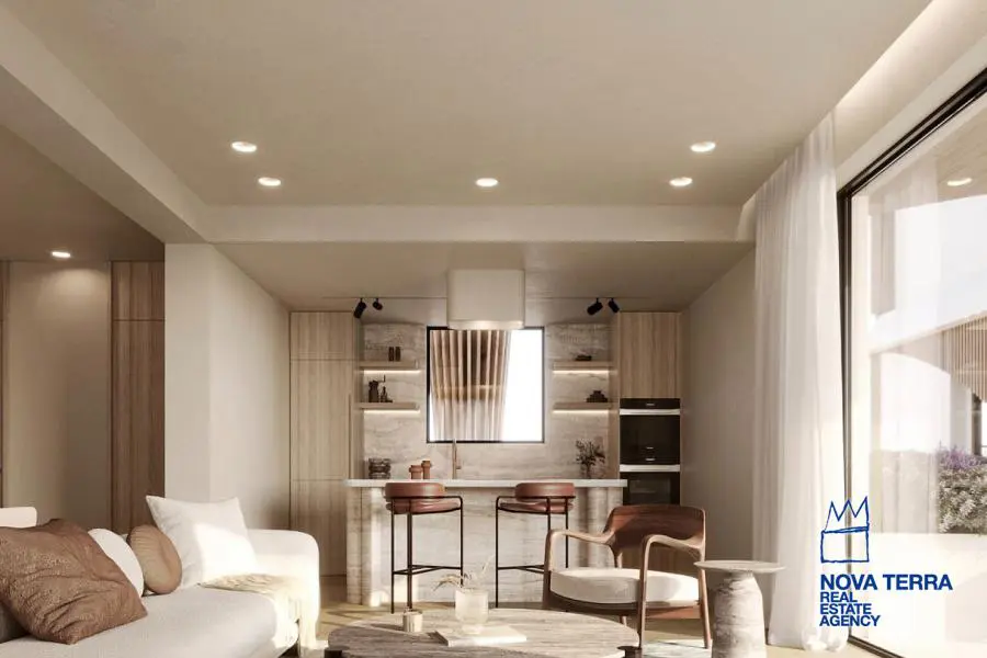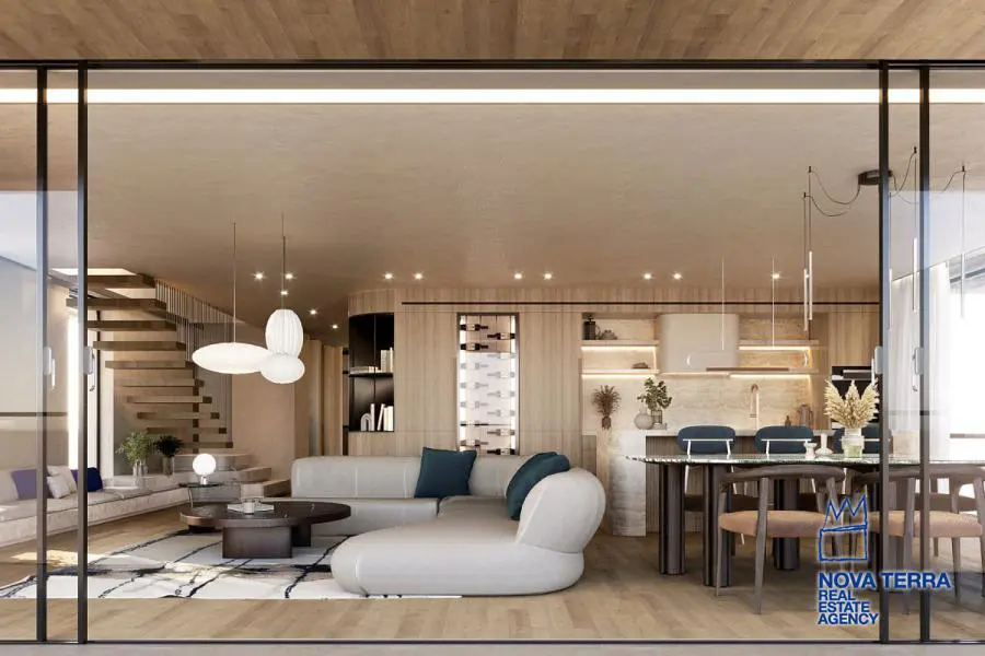 VOULA - PIGADAKIA, Duplex / Triplex Apartment,, Sale, 183 sq.m, on a plot of 200 sq.m, year built 2025, 3 rooms, Ground Floor, 1st, Various Characteristics: Balcony, Bath (3), Fire Place, Garden, Kitchen, Living room, Store Room, Swimming Pool, Toilet, Master Bedrooms: 3 Master Bedrooms, Heating: Autonomous Heating (auto-system), Access road, Aluminium panels, Bright, Double-glazing, Electric Roller Windows, Facade, From Side to Side, Luxury, Minimal, Painted, Screens, Security Alarm, Security Door, In perfect condition: Pets allowed: For investment: Parking area: Garage (2), Energy class: A. property ID: 52399, www.nova-terra.gr