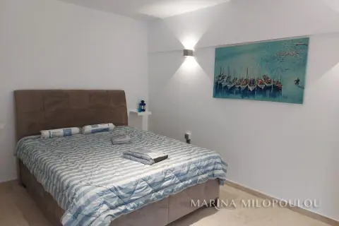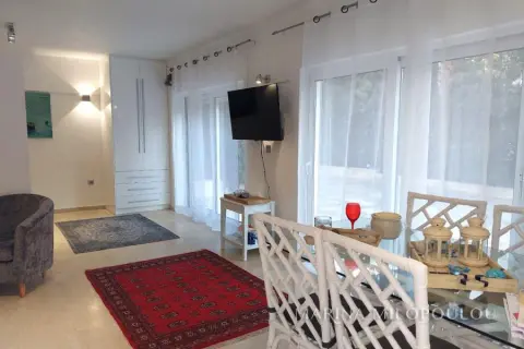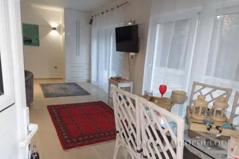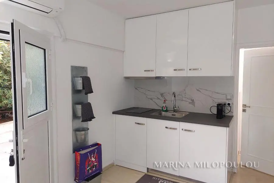 Voula, a single space, fully furnished studio, on the ground floor, 40 sq.m. It is on the side of the building with an independent entrance, with a green view and a good layout. It features double glazing, electric shutters, security door, alarm, 1 inverter air conditioner for cooling - heating, washing machine - dryer, refrigerator, ceramic hobs, TV. internet connection South sunny orientation, very quiet location, close to local market. No maintenance expenses, electricity bill 90€/month aprox. Pets not allowed. Distance from the local market 350 meters, from bus stop 200m, 1.2km from the Tram terminal and Voula's organized beach, 1.5 km from the square of Voula.