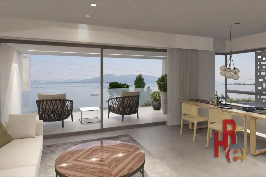 Το συγκρότημα αποτελείται από 13 διαμερίσματα διάφορων τετραγωνικών, συνολικού εμβαδού 1200 τμ, κτισμένα σε οικόπεδο 1355 τμ, πάνω στη θάλασσα. Αποτελείται από δυο μπλοκ κατοικιών, το κάθε ένα με δικό του κλιμακοστάσιο και δικό του ανελκυστήρα. Το Α μπλοκ έχει ένα διαμέρισμα στην πυλωτή 73 τμ όπου διαθέτει κήπο αποκλειστικής χρήσης 190 τμ, Α όροφο με τέσσερα διαμερίσματα, 77τμ, 56τμ, 56τμ και 74 τμ, Β όροφο με τέσσερα διαμερίσματα 77τμ, 56τμ, 56τμ και 74τμ, μαζί με τις αντίστοιχες σοφίτες τους, 33 τμ με χώρο αποκλειστικής χρήσης 55τμ σε φυτεμένο δώμα, 30τμ με χώρο αποκλειστικής χρήσης 38τμ σε φυτεμένο δώμα, 30τμ με χώρο αποκλειστικής χρήσης 38τμ σε φυτεμένο δώμα και 36τμ με χώρο αποκλειστικής χρήσης 52 τμ σε δώμα με φυτά. Οι κοινόχρηστοι χώροι του κτιρίου Α είναι 215τμ. Το Β μπλοκ έχει Α όροφο με δυο διαμερίσματα 90τμ και 82τμ, Β όροφο με δυο διαμερίσματα 90τμ και 82τμ, μαζί με τις αντίστοιχες σοφίτες τους 42τμ με χώρο αποκλειστικής χρήσης 56τμ σε φυτεμένο δώμα και 42τμ με χώρο αποκλειστικής χρήσης 52τμ σε φυτεμένο δώμα, αντίστοιχα. Οι κοινόχρηστοι χώροι του κτιρίου Β είναι 36τμ. Η επιφάνεια των 13 υπογείων αποθηκών είναι 91τμ. Στο υπόγειο υπάρχουν και δυο studios επιφάνειας 28τμ το καθένα, με θέα θάλασσα. Στον ακάλυπτο χώρο υπάρχουν 16 θέσεις στάθμευσης αυτοκινήτων. Όλα τα σπίτια είναι διαμπερή, με φάτσα μπροστά στη θάλασσα και πίσω όψη στο βουνό. Κάθε σπίτι διαθέτει δική του θέση στάθμευσης και δική του υπόγεια αποθήκη. Το κτίριο είναι ενεργειακής κλάσης Α+, που σημαίνει, φωτοβολταϊκά για δωρεάν ρεύμα, ηλιακούς συλλέκτες για παραγωγή ζεστού νερού, βιολογική επεξεργασία λυμάτων, LED φωτισμό, πρίζα φόρτισης για ηλεκτρικό αυτοκίνητο, ενεργειακά κουφώματα και τζάμια, κλιματισμό [ψύξη – θέρμανση] inverter, θερμοπρόσοψη, ανελκυστήρες ηλεκτρομηχανικούς χαμηλής κατανάλωσης, πυρανίχνευση, θωρακισμένες πόρτες, συναγερμό, WIFI, κλπ. Το συγκρότημα βρίσκεται απέναντι από τα Λιχαδονήσια και το CLUB MED, απέχει 10 λεπτά με το αυτοκίνητο από το λιμάνι του Αγ. Κωνσταντίνου, από όπου φεύγουν τα πλοία για Σκιάθο, Σκόπελο, Αλόννησο, απέχει 20 λεπτά από την Λαμία [όπου υπάρχει μεγάλο νοσοκομείο], διαθέτει δυο ιαματικές πηγές σε απόσταση 15 λεπτών με τα πόδια και βρίσκεται σε απόσταση 10 λεπτών από τις Θερμοπύλες και 60 λεπτών από τους Δελφούς και την Αράχωβα. Επίσης σε απόσταση 500τμ από το συγκρότημα υπάρχει ιδιωτική μαρίνα για σκάφη. Τέλος, απέχει από το αεροδρόμιο Ελευθέριος Βενιζέλος 1,5 ωρα με το αυτοκίνητο.