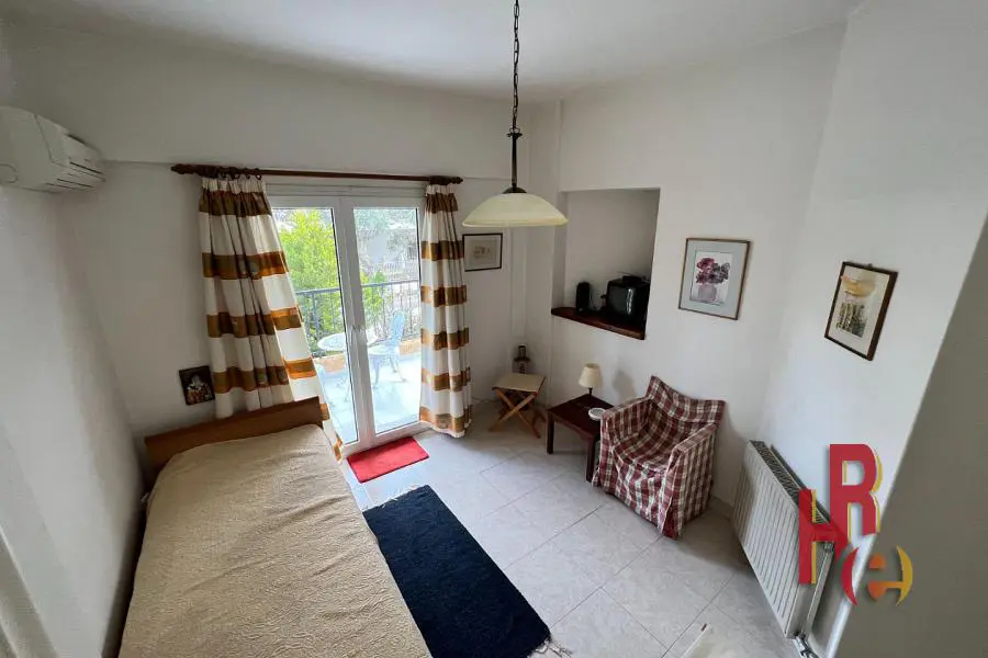 Επιπλωμένη μεζονέτα 173τμ σε οικόπεδο 670τμ στη Σαρωνίδα κοντά στην πλατεία. Εκτείνεται σε 2 επίπεδα, ισόγειο και 1ο όροφο. Το ισόγειο αποτελείται από ένα καθιστικό με τζάκι, κουζίνα, ένα μικρό υπνοδωμάτιο και ένα λουτρό. Το καθιστικό βγαίνει σε μια άνετη βεράντα μπροστά και ακόμα μία στο πίσω μέρος. ο 1ος όροφος αποτελείται από 4 υπνοδωμάτια, 2 λουτρά και διαθέτει ένα μπαλκόνι στην πρόσοψη και μια βεράντα στο πίσω μέρος. Χαρακτηριστικά όπως ηλιακός θερμοσίφωνας, όμορφος κήπος καθώς και η μικρή απόσταση από την πλατεία της Σαρωνίδας και τα μαγαζιά της το καθιστούν ιδιαίτερα ελκυστική επιλογή.