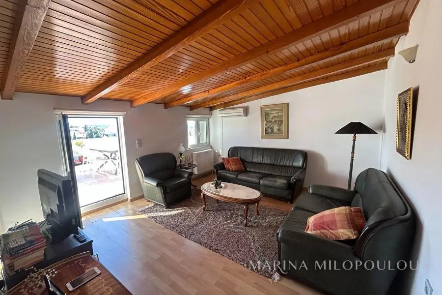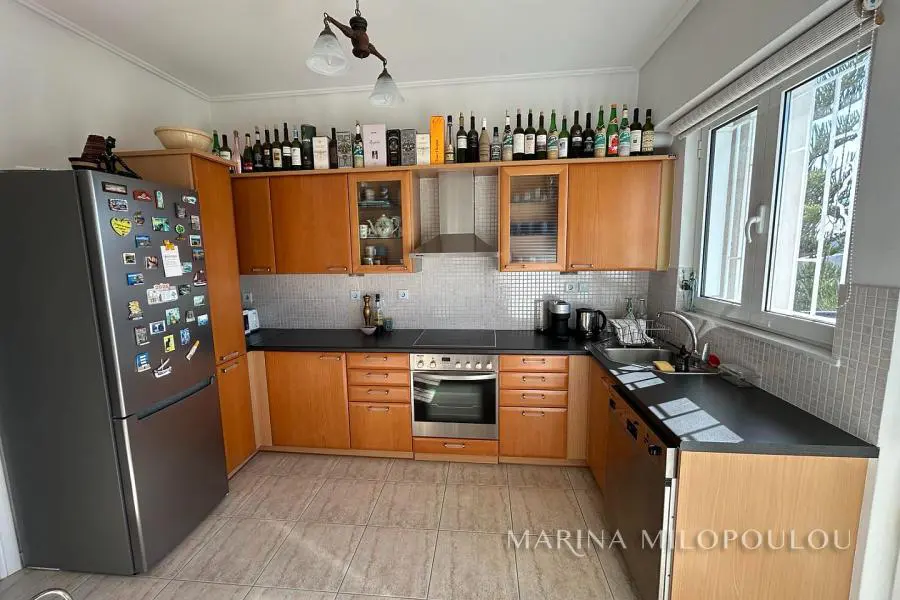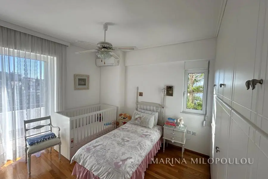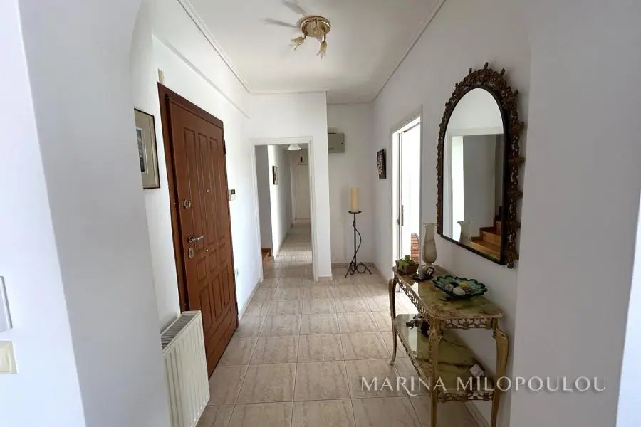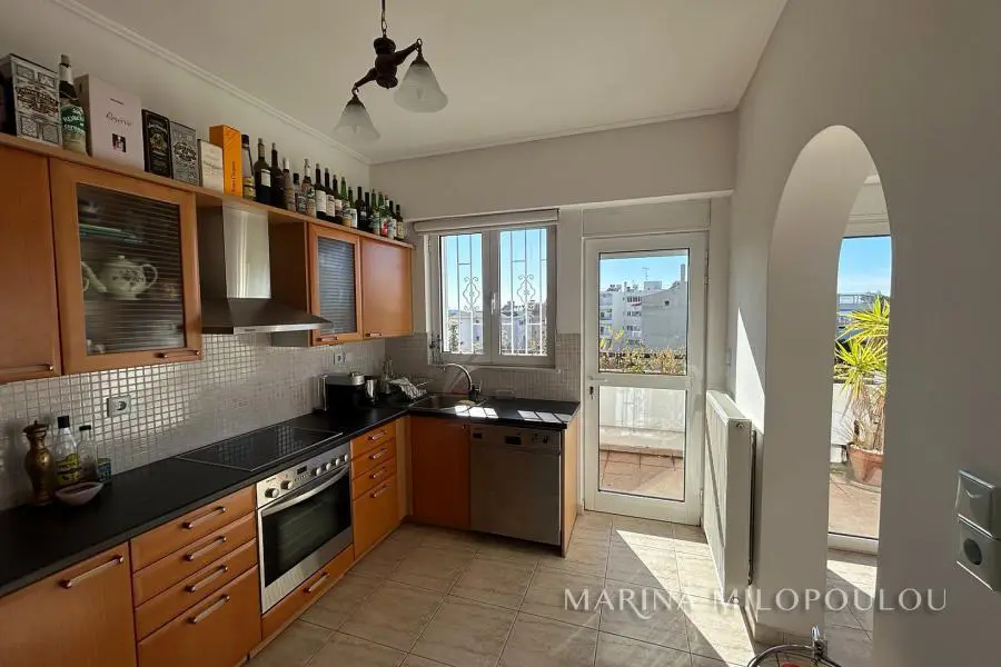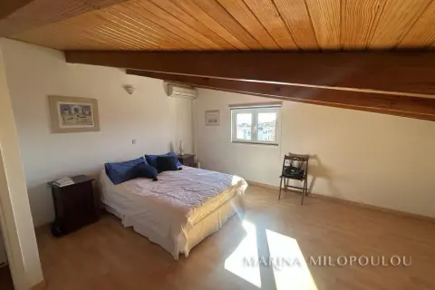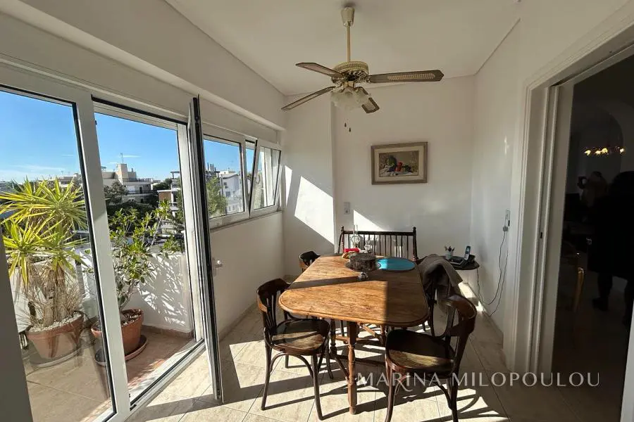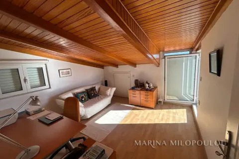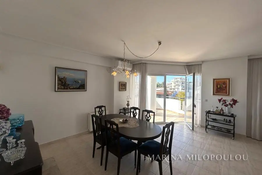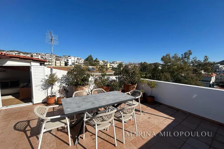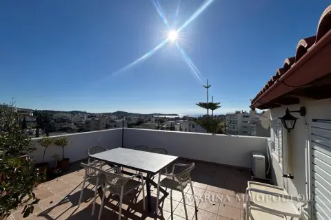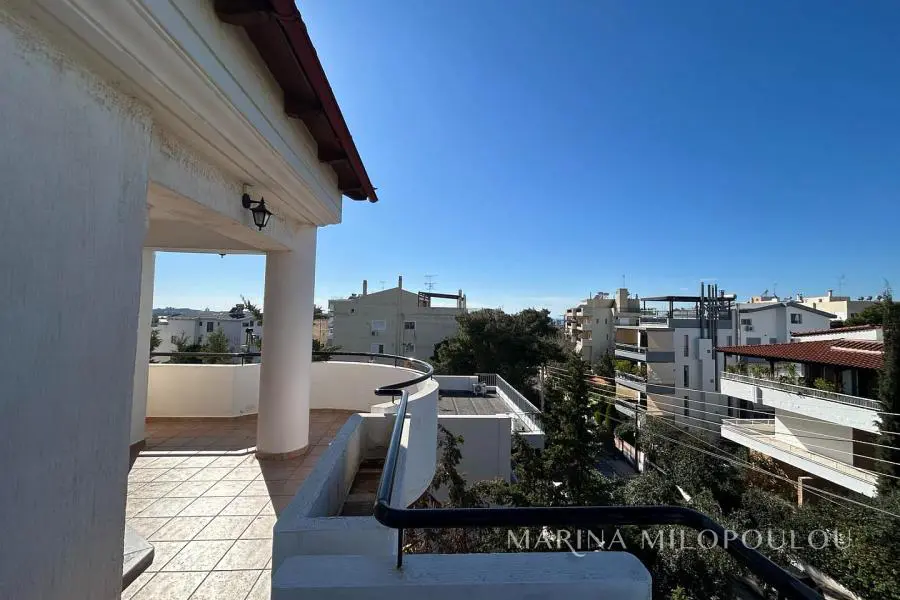 ΒΟΥΛΑ - Καλυμνιώτικα, Μεζονέτα κτιρίου, 3ου - 4ου ορόφου, 220 τμ. με θέα θάλασσα. - 3ος όροφος, 160 τμ, ο οποίος περιλαμβάνει άνετο χώρο υποδοχής με τζάκι, τραπεζαρία, χωριστή κουζίνα με καθημερινή τραπεζαρία, 3 ευρύχωρα υπνοδωμάτια, 2 μεγάλα μπάνια, βεράντες σε όλα τα δωμάτια. - 4ος όροφος, σοφίτα 70 τμ, με επικλινότητα στέγης, η οποία σε κάποια σημεία έχει χαμηλό ύψος. Περιλαμβάνει καθιστικό με έξοδο σε μεγάλη βεράντα Δυτικού προσανατολισμού με θέα θάλασσα, 1 υ/δ, 1 γραφείο και 1 ευρύχωρο μπάνιο. Όλη η κατοικία είναι ηλιόλουστη, φωτεινή με άνετες βεράντες και στους δύο ορόφους. Διαθέτει πόρτα ασφαλείας, δρύινα δάπεδα στα υ/δ και ωραίο πλακάκι cotto στους υπόλοιπους χώρους, αυτονομία θέρμανσης πετρελαίου, 5 A/Cs, ασανσέρ (μέχρι τον 3ο όροφο), διπλά τζάμια, χώρο laundry, πατάρι επάνω από τα μπάνια, 2 θέσεις στάθμευσης πυλωτής εν σειρά, συναγερμό, όλες τις ηλεκτρικές συσκευές. Μέσα μηνιαία κοινόχρηστα 80€ Αποτελεί μέρος προσεγμένου κτιρίου με συνολικά 4 κατοικίες. Διατίθεται άδειο στα 2500€ ή επιπλωμένο στα 3000€. Μικρό κατοικίδιο δεκτό. Μόλις 800μ απο το κέντρο της Βούλας, 850μ απο την Β πλαζ Βούλας, 5χλμ απο την Μαρίνα του Αστέρα.