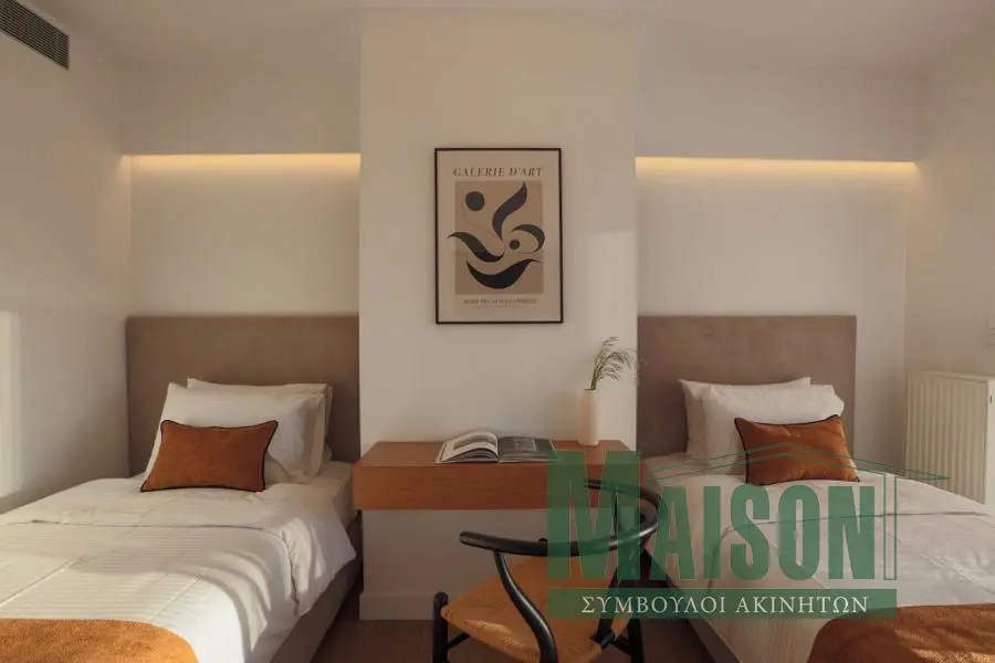 Μεζονέτα ισογείου–1ου ορόφου, συνολικής επιφάνειας 135 τ.μ., κατασκευής 2012 και πλήρως ανακαινισμένη το 2024, διατίθεται επιπλωμένη και σε άριστη κατάσταση. Αναπτύσσεται σε δύο επίπεδα και αποτελείται από ευρύχωρο σαλόνι με τζάκι, κουζίνα πλήρως εξοπλισμένη με ηλεκτρικές συσκευές, δύο υπνοδωμάτια (το ένα master), δύο μπάνια και ένα WC. Διαθέτει αυτόνομη θέρμανση πετρελαίου, κλιματισμό, ηλιακό θερμοσίφωνα, διπλά τζάμια, πόρτα ασφαλείας, σίτες, τέντες και εσωτερική σκάλα. Περιλαμβάνει θέση στάθμευσης, αποθήκη και ασανσέρ. Το ακίνητο προσφέρει απεριόριστη θέα, μεγάλες βεράντες και πισίνα. Χωρίς επιπλέον κοινόχρηστα (περιλαμβάνονται στο ενοίκιο). κωδικός ακινήτου: 21161, www.maison-estate.gr