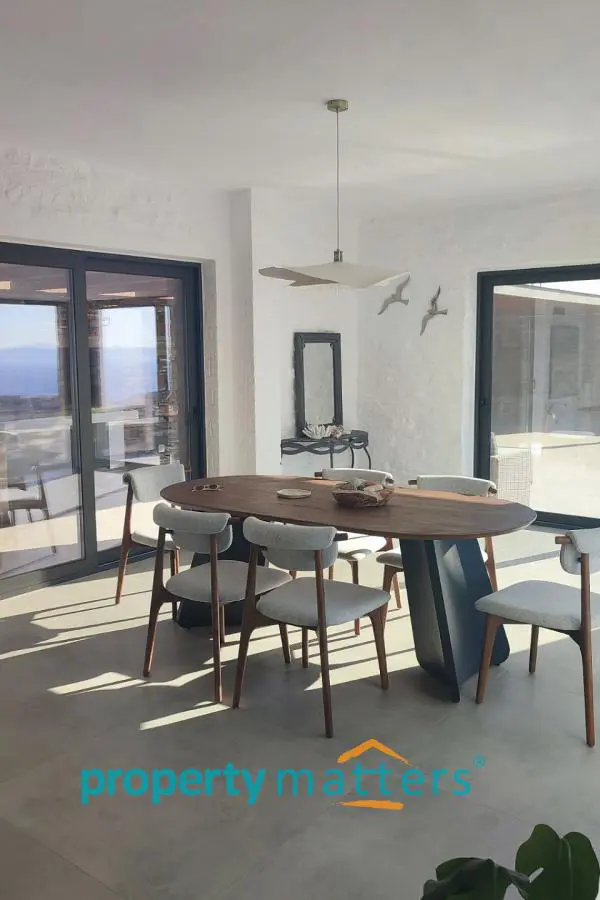 Αυτή η μοναδική, ανεξάρτητη κατοικία αποτελεί μέρος ενός συγκροτήματος τριών αυτόνομων κατοικιών, διατηρώντας την ιδιωτικότητα και την αποκλειστική χρήση ενός μεγάλου τμήματος του συνολικού οικοπέδου των 8.647 τ.μ. Το ακίνητο είναι σχεδιασμένο με σύγχρονη μίνιμαλ αισθητική, ενώ ενσωματώνει παραδοσιακά κυκλαδίτικα στοιχεία, προσφέροντας άνεση και υψηλή ποιότητα διαβίωσης. Ισόγειο Α' : - Ευρύχωρο καθιστικό με υπέροχη πανοραμική θέα - Πλήρως εξοπλισμένη ανοιχτή κουζίνα με ηλεκτρικές συσκευές - Τραπεζαρία με άμεση πρόσβαση στη μεγάλη βεράντα - Ένα υπνοδωμάτιο με δικό του μπάνιο - Ένα επιπλέον WC - Εξωτερικός χώρος με ιδιωτική πισίνα, BBQ, πέτρινο χτιστό καναπέ, πέργκολα και εξωτερικό ντους - Κήπος και υπόγειοι αποθηκευτικοί χώροι Ισόγειο Β': - Τρία ευρύχωρα υπνοδωμάτια, το καθένα με το δικό του μπάνιο - Πανοραμική θέα στο ηλιοβασίλεμα, τον φάρο του Αγίου Νικολάου, το λιμάνι και τη Μακρόνησο - έξοδος σε ιδιωτικό κήπο Εξωτερικοί Χώροι & Υποδομές: - Ιδιωτικός ακάλυπτος χώρος - Ασκεπής πισίνα - Μηχανοστάσιο πισίνας - Δύο υπόγειες δεξαμενές νερού για οικιακή χρήση και συντήρηση της πισίνας Αυτή η κατοικία προσφέρει την απόλυτη αίσθηση ιδιωτικότητας και χαλάρωσης, με απρόσκοπτη θέα στο Αιγαίο και σύγχρονες ανέσεις, καθιστώντας την ιδανική επιλογή για όσους αναζητούν ένα πολυτελές εξοχικό σπίτι στην Κέα.