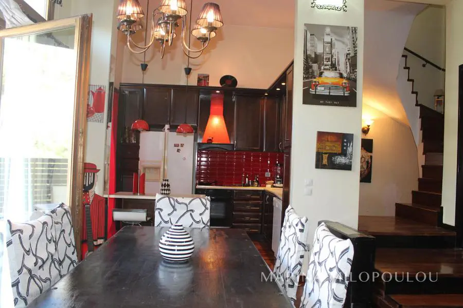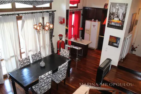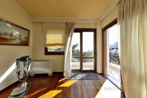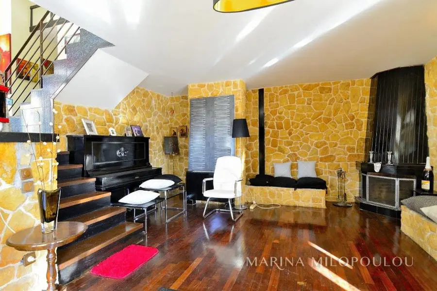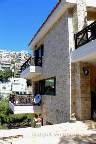 ΒΟΥΛΑ - Πανόραμα, στην χαμηλή ζώνη, διπλοκατοικία συνολικής επιφάνειας 300τμ, η οποία αποτελείται από 2 ανεξάρτητες κατοικίες, με διαφορετικές εισόδους και θέα θάλασσα από όλα τα επίπεδα. Είναι εντός επικλινούς οικοπέδου επιφανείας 340 τμ, με πρόσβαση από 2 δρόμους. Κλασσική αρχιτεκτονική με πέτρα και ξύλο εναρμονισμένο στο πυκνό πευκόφυτο λόφο του Πανοράματος. - Μεζονέτα 2 επιπέδων (επάνω): Στο πρώτο επίπεδο, ο χώρος υποδοχής με τζάκι, ενιαία τραπεζαρία κουζίνα, 1 wc, μεγάλη αυλή στην οποία υπάρχει χώρος για κατασκευή πισίνας. Στον όροφο χωλ, 2 υ/δ (1 master), το δεύτερο με θέα θάλασσα και walk - in closet. - Διαμέρισμα (κάτω) τύπου loft, το οποίο εκτείνεται σε 3 ανισόπεδα επίπεδα με σκαλιά: ενιαία τραπεζαρία κουζίνα, 7 σκαλιά προς τα κάτω το σαλόνι με τζάκι, 1 wc, 1 υ/δ, χώρος γραφείου και 1 μπάνιο. 'Εξοδος σε μεγάλη αυλή με προεγκατάσταση πισίνας και θέα θάλασσας. Η οικία διαθέτει δρύινα δάπεδα σε όλους τους κυρίως χώρους, fancoil για ψύξη / θέρμανση (αυτονομία ανά όροφο), νυχτερινό ρεύμα, προεγκατάσταση για ασανσέρ (φρεάτιο) και για κεντρικό κλιματισμό, μεγάλη υπόγεια αποθήκη όπου βρίσκεται και το λεβητοστάσιο, η οποία θα μπορούσε να διαμορφωθεί και σε υπόγειο garage με κατασκευή ράμπας, προεγκατάσταση πισίνας Βρίσκεται σε εύκολα προσβάσιμο σημείο, μέσα στο πράσινο και προσφέρει σχετική θέα θάλασσα από όλα τα επίπεδα. Άδεια οικοδομής το 2000, αποπεράτωση το 2003. Τιμή ζώνης 2500€. ΕΝΦΙΑ 2500€ Βρίσκεται σε απόσταση 1 χλμ από την πλατεία του Αγίου Νεκταρίου, 3,5 χλμ από την πλατεία της Βούλας, 4 χλμ από την Α'πλαζ Βούλας και 22 χλμ από το αεροδρόμιο.