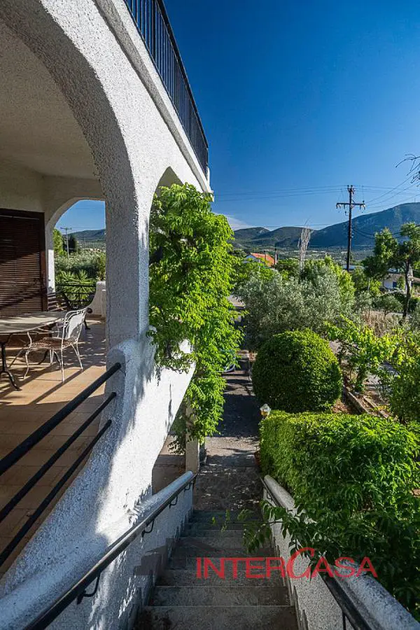 Χαλκίδα 680μ απο τη θάλασσα, διπλοκατοικία αποτελούμενη απο δύο (2) ανεξάρτητες οικίες συνολικής επιφάνειας 243,93τ.μ, ισογείου και 1ου ορόφου, σε οικόπεδο 1.732,4τ.μ με 15 ελιές ( 458 κιλά ελιές το 2024 με απόδοση 70-80 κιλά λάδι.).Η διπλοκατοικία διαθέτει αυτόνομη θέρμανση πετρελαίου ανά όροφο, σύστημα συναγερμού, κλιματισμό σε όλους τους χώρους, σκάλα (απο τον 1ο όροφο) που πάει στην ταράτσα, η οποία είναι περιφραγμένη περιμετρικά με κάγκελα και δικαίωμα επιπλέον ανέγερσης στην ταράτσα. Συγκεκριμένα αποτελείται απο: Ισόγειο 111,60τ.μ+28,70τ.μ βοηθητικούς χώρους, 2 υπνοδωμάτια-το ένα με δικό του ανεξάρτητο μπάνιο, εντοιχισμένες ντουλάπες, κλιματισμός, προθάλαμος 1,50τ.μ, 2ο μπάνιο, κουζίνα με πάσο με εσωτερικό τοίχο επενδυμένο με πέτρα και σαλόνι με με αερόθερμο μαντεμένιο τζάκι επενδυμένο με πέτρα, πλακάκια σε όλους τους χώρους, παράθυρα αλουμινένια με διπλά τζάμια και σίτες και κάγκελα για λόγους ασφαλείας, αυλή στρωμένη με ψηφιδωτή πλάκα, με ηλεκτροκίνητη τέντα και πετρόκτιστο καναπέ, κοινόχρηστο λεβητοστάσιο με ανεξάρτητη είσοδο καθώς ολόκληρη η διπλοκατοικία έχει αυτόνομη ανά όροφο θέρμανση πετρελαίου. Επιπλέον στο ισόγειο ημιτελής ανεξάρτητη γκαρσονιέρα 20τ.μ με 1 υπνοδωμάτιο, μικρό μπάνιο και μικρή κουζίνα. 1ος όροφος 103,60τ.μ, με 2 υπνοδωμάτια, με δικό τους ξεχωριστό μπαλκόνι το κάθε ένα και εντοιχισμένες ντουλάπες, μπάνιο, κουζίνα ενιαία με σαλόνι και τραπεζαρία, τζάκι, κλιματισμός, πλακάκια παντού, βεράντες με θέα από 3 πλευρές. Το οικόπεδο περιλαμβάνει 15 ελιές που παρήγαγαν 458 κιλά ελιές το 2024 (μια καλή χρονιά) που απέδωσαν 70-80 κιλά λάδι. 4 λεμονιές, 3 πορτοκαλιές, 1 μανταρινιά, 4 πεύκα, 1 πολύ μεγάλο κάκτο και 1 μικρό, 2 συκιές, 4 δάφνες, 1 μεγάλη γιούκα και 3 μικρότερες, 3 Leyland cypress, 1 μικρό αμπέλι, 1 μεγάλη φραγκοσυκιά, και πολλά θαμνώδη φυτά. (Τριανταφυλλιές, γαρυφαλλιές, καλλωπιστικά θαμνώδη φυτά, αναρριχητικά φυτά). Στον ίδιο χώρο βρίσκεται 1 πέτρινο σιντριβάνι. Στον χώρο του οικοπέδου και σε ανεξάρτητο από το οίκημα σημείο, υπάρχει αποθήκη εργαλείων 17 m 2 περίπου, ενώ κάτω από την σκάλα που ενώνει το ισόγειο με τον πρώτο όροφο υπάρχει μια δεύτερη με ανεξάρτητη είσοδο αποθήκη 2,5m 2 περίπου. Σκεπαστή θέση parking αυτοκινήτου και ξύλινη πέργολα στο χώρο του οικοπέδου. Το πετρώδες υπέδαφος (σχιστολιθικό) παρέχει αντισεισμική προστασία.