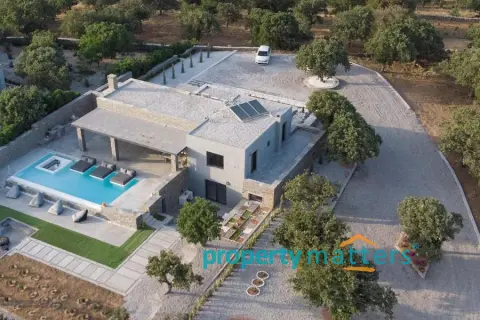 Στην καρδιά της κοσμοπολίτικης Κέας, σε απόσταση μόλις 3,2 χιλιομέτρων από την Ιουλίδα και λίγα λεπτά από τις χρυσαφένιες ακτές των Ποίσων και του Κούνδουρου, αποκαλύπτεται μια κατοικία που ορίζει την έννοια της πολυτέλειας. Πρόκειται για μια σπάνιας αισθητικής βίλα-μονοκατοικία, κατασκευασμένη το 2018, με συνολική επιφάνεια 320 τ.μ., σε ιδιόκτητο οικόπεδο 2.000 τ.μ., σχεδιασμένη για να προσφέρει την απόλυτη εμπειρία ζωής στο Αιγαίο. Οι εσωτερικοί της χώροι, φωτεινοί και διαμπερείς, φιλοξενούν πέντε υπνοδωμάτια υψηλής άνεσης και επτά πολυτελή μπάνια, όλα με υδρομασάζ. Το κομψό σαλόνι με το τζάκι δημιουργεί την ιδανική ατμόσφαιρα για χειμερινούς μήνες, ενώ η πλήρως εξοπλισμένη κουζίνα – με πλυντήριο πιάτων, φούρνο μικροκυμάτων και πλυντήριο ρούχων – εξυπηρετεί κάθε σύγχρονη ανάγκη. Η βίλα διαθέτει επίσης γυμναστήριο, χαμάμ, κλιματισμό σε όλους τους χώρους, αυτόνομη θέρμανση πετρελαίου, τριφασικό ρεύμα, δορυφορική κεραία, εσωτερική σκάλα, συναγερμό, πόρτα ασφαλείας και αποθήκη. Στον εξωτερικό χώρο, η ιδιωτική πισίνα αγκαλιάζεται από περιποιημένο κήπο με μπάρμπεκιου και ηλιόλουστη βεράντα, προσφέροντας πανοραμική θέα και ατμόσφαιρα απόλυτης χαλάρωσης. Η πρόσβαση είναι εύκολη μέσω ασφαλτοστρωμένου δρόμου, ενώ ο ιδιωτικός χώρος στάθμευσης ενισχύει την άνεση και την ασφάλεια. Με προσανατολισμό νοτιοανατολικό, ενεργειακή κλάση Α+ και άψογη κατασκευή, αυτή η βίλα αποτελεί ιδανική επιλογή τόσο για ιδιωτική απόλαυση όσο και για επαγγελματική/τουριστική εκμετάλλευση. Σπάνια συναντά κανείς έναν τέτοιο συνδυασμό αρχιτεκτονικής κομψότητας, θέσης και ποιοτικών χαρακτηριστικών. Η τιμή πώλησης ανέρχεται στα €2.200.000 – μια επένδυση που αποτυπώνει την ουσία της πολυτελούς διαβίωσης στις Κυκλάδες.