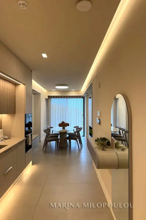 ΒΟΥΛΑ-Κάτω, Νεόδμητο, Επιπλωμένο οροφοδιαμέρισμα 2ου, 93τμ, Νοτιοδυτικού προσανατολισμού με θέα σε πάρκο. Αποτελείται από ενιαίο χώρο υποδοχής-τραπεζαρία με τζάκι υγραερίου, κουζίνα πλήρως εξοπλισμένη, 2 υ/δ (το ένα master), 1 επιπλέον μπάνιο, βεράντα προσόψεως και στην πίσω πλευρά. Αποτελεί μέρος σύγχρονου, γωνιακού 3όροφου κτιρίου 4ων οροφοδιαμερισμάτων, ενεργειακής κλάσης Α+ Διαθέτει ενδοδαπέδια θέρμανση και κεντρικό κλιματισμό με αντλία θερμότητας, ηλιακό θερμοσίφωνα, φωτοβολταϊκό σύστημα για σημαντική μείωση της κατανάλωσης ρεύματος, διπλά τζάμια, σίτες, συναγερμό, θέση στάθμευσης (ανοικτή) κοινόχρηστο γυμναστήριο με hammam και sauna. Το διαμέρισμα θα κατοικηθεί πρώτη φορά. Κοινόχρηστα 150€/μήνα στα οποία περιλαμβάνονται η χρήση τoυ γυμναστηρίου και το Internet. Εξαιρετική θέση ακινήτου κοντά στα σύνορα με Γλυφάδα, απέναντι από πάρκο, σε απόσταση 400 μέτρων από τοπική αγορά, 1,2 χλμ από την Α πλαζ Βούλας, 1,5 χλμ από το κέντρο της Βούλας και από τον εμπορικό ιστό της Γλυφάδας.