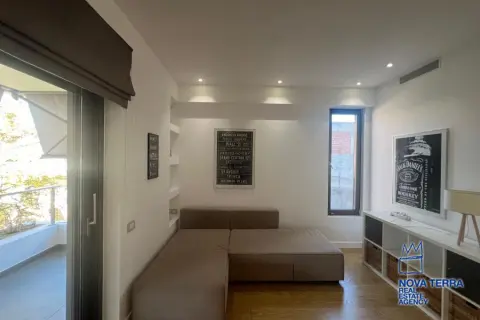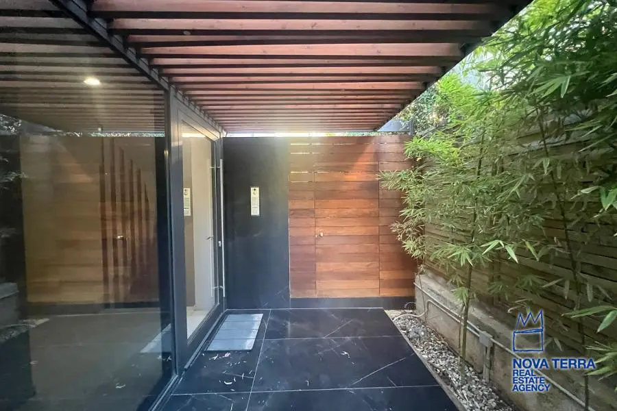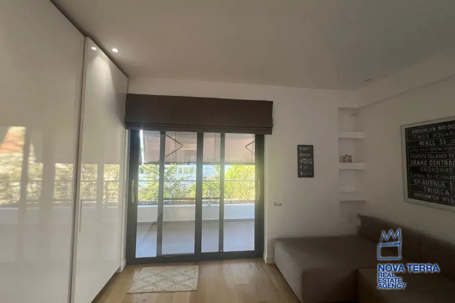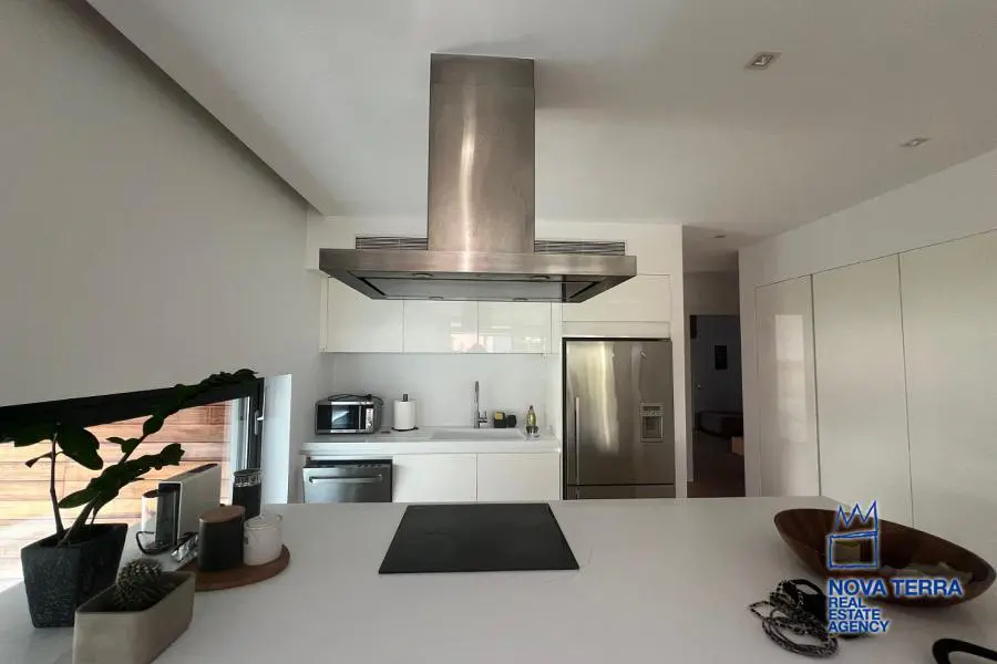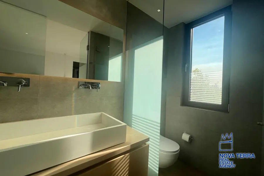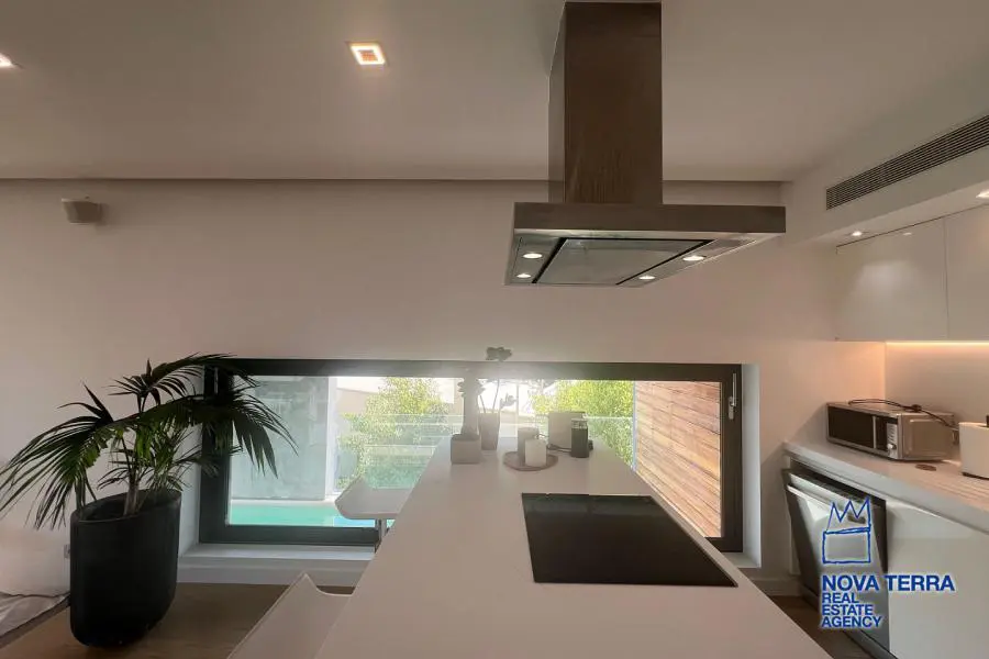 Οροφο-διαμέρισμα επιπλωμένο 2ου ορόφου κατασκευής του 2017, 115τμ. 80 μέτρα από την θάλασσα και 5 λεπτά περπατώντας από το κέντρο της Γλυφάδας. Το διαμέρισμα αποτελείται από 2 υπνοδωμάτια, ένα master un suite υπνοδωμάτιο και ένα δεύτερο με χρήση δικού του λουτρού. Το σαλόνι, τραπεζαρία και η κουζίνα βρίσκονται σε open plan διάταξη με θέα στην ιδιωτική πισίνα 18τμ. που βρίσκεται στο μπαλκόνι. Εσωτερικά, τα υλικά χρώματος λευκού σε συνδυασμό με το ξύλινο δάπεδο και το deck εξωτερικά, δημιουργούν μια φρέσκια και ευχάριστη ατμόσφαιρα, τονίζοντας ιδιαίτερα τον μοντέρνο και minimal αρχιτεκτονικό σχεδιασμό του διαμερίσματος. Περιμετρικά μεγάλα ανοίγματα επιτρέπουν την διάχυση φυσικού φωτισμού, ενώ υπάρχει η δυνατότητα σκίασης με την χρήση ηλεκτρικών σκιάστρων (τέντες) και ηλεκτρικά roller , ενώ ηλεκτρικά ρολά από την πίσω πλευρά του διαμερίσματος. Στο σαλόνι υπάρχει τζάκι βιοαιθανόλης, ενώ ο χώρος θερμαίνεται και ψύχεται με σύστημα ενδοδαπέδιας θέρμανσης/ψύξης με χρήση fan coil και αντλιών θερμότητας. Στο διαμέρισμα ανήκει μια θέση στάθμευσης στο υπόγειο garage, καθώς και μια αποθήκη 10τμ