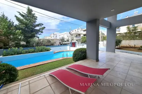 Βούλα- Κάτω, πολυτελές οροφοδιαμέρισμα 1ου, επιφανείας 165 τμ με Νότιο προσανατολισμό. Άνετος χώρος υποδοχής με τζάκι - τραπεζαρία, σχεδόν χωριστή ευρύχωρη κουζίνα με καθημερινή τραπεζαρία, 3 άνετα υ/δ -το 1 master, 2 επιπλέον μπάνια, άνετη η βεράντα προσόψεως, η οποία έχει θέα τον κήπο και την πισίνα και επιπλέον 3 βοηθητικές βεράντες. Φωτεινό και ηλιόλουστο διαμέρισμα, με σωστή εργονομία χώρων, με 2 εισόδους, παρέχοντας ιδιωτικότητα, με ωραία ανοίγματα και θέα πρασίνου, σε πολύ ήσυχο οικιστικό σημείο. Ποιοτική κατασκευή με άφθονους χώρους, δρύινα δάπεδα, πόρτες ασφαλείας, διπλά τζάμια, ηλεκτρικά και συρόμενα παντζούρια σίτες, ηλεκτρικές τέντες, εντοιχισμένες ηλεκτρικές συσκευές, αυτονομία πετρελαίου, boiler, συναγερμό, 1 υπόγεια θέση στάθμευσης , αποθήκη 7 τμ. Αποτελεί μέρος φροντισμένου 4όροφου κτιρίου, 5 ιδιοκτησιών, με περιποιημένο περιβάλλοντα χώρο και κοινόχρηστη πισίνα. Τιμή ζώνης 2800€. Εξαιρετική θέση ακινήτου, 500 μέτρα από το κέντρο της Βούλας, 800 μ από ελεύθερη αμμώδη παραλία, 2.5 χλμ από τις οργανωμένες παραλίες της περιοχής και 22 χλμ από το αεροδρόμιο.