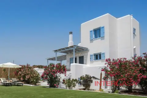 Naxos Island. A Magnificent Cycladic Holiday Villa Only 100m From The Sea. Built On 3 Levels, Inside A Secured Land With A Guardhouse At The Front Gate Entrance, Offering A Private Landscaped Garden With Bbq. Size: 146 Sq.m., 3 Levels Plot Size: 1323 Sq.m. 4 Bedrooms, 4 Bathrooms 2 Living Rooms, Pool, Bbq Sea View Balcony & Patio Wifi - A/c In All Rooms 2 Fully Equipped Kitchens Private Parking Area