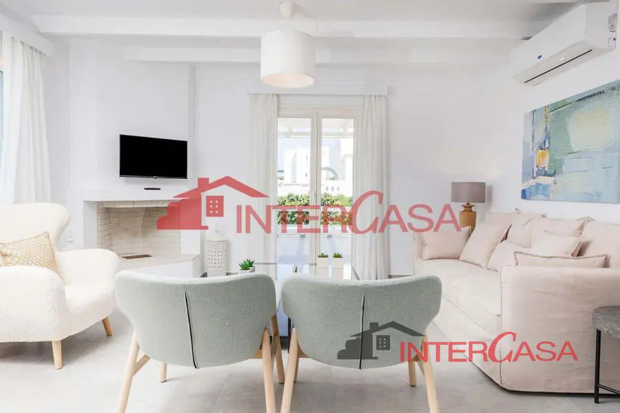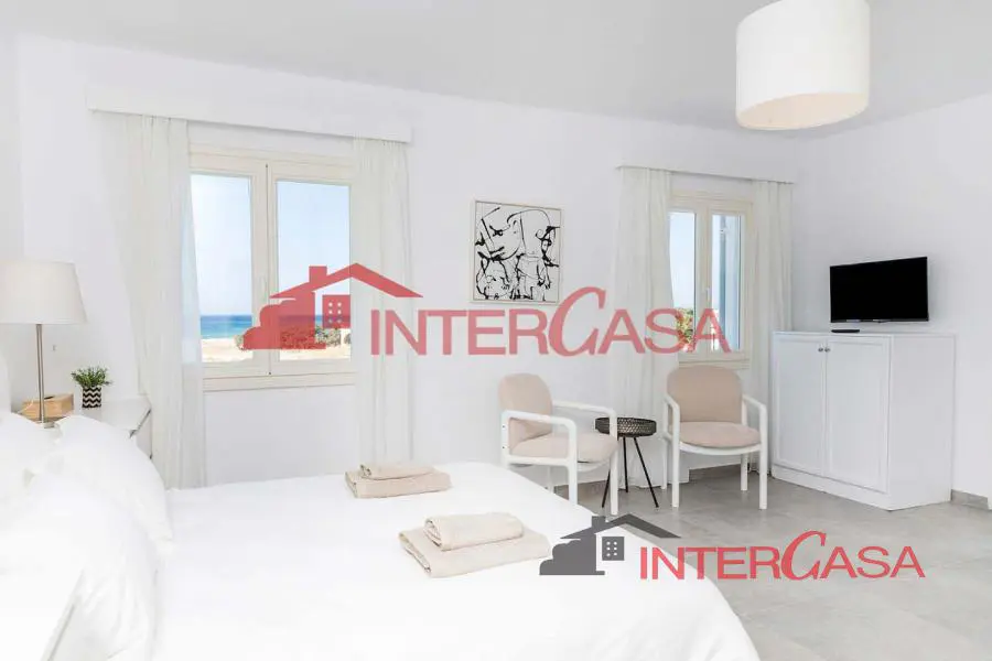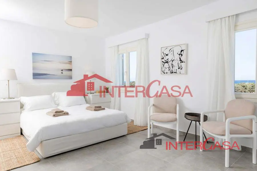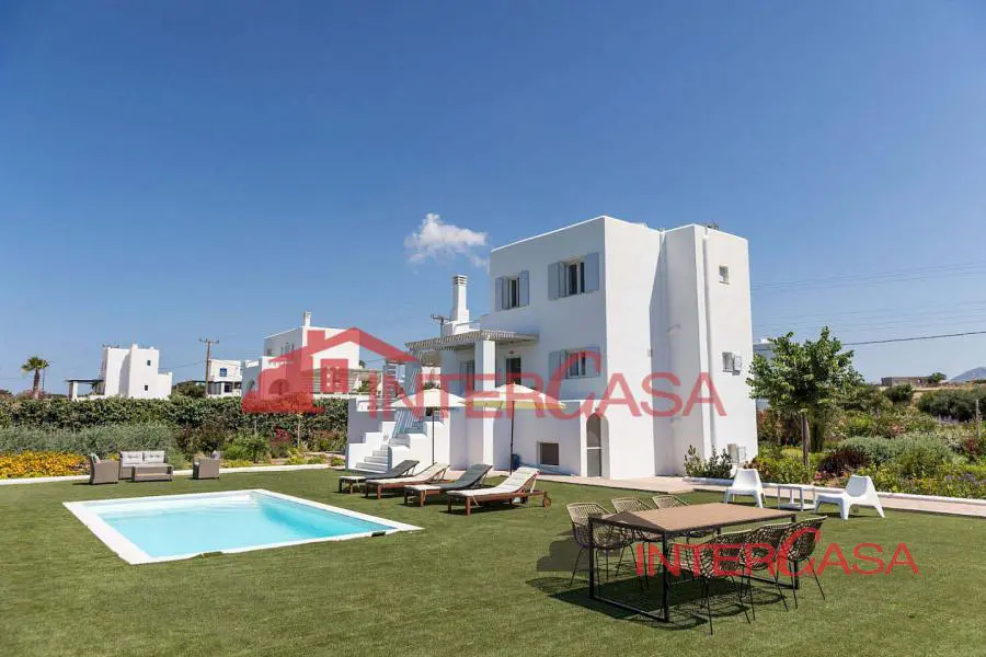 Naxos Island. A Magnificent Cycladic Holiday Villa Only 100m From The Sea. Built On 3 Levels, Inside A Secured Land With A Guardhouse At The Front Gate Entrance, Offering A Private Landscaped Garden With Bbq. Size: 217 Sq.m., 3 Levels Plot Size: 2046 Sq.m. 5 Bedrooms, 5 Bathrooms 2 Living Rooms, Pool, Bbq Sea View Balcony & Patio Wifi - A/c In All Rooms - 2 Fully Equipped Kitchens, Private Parking Area