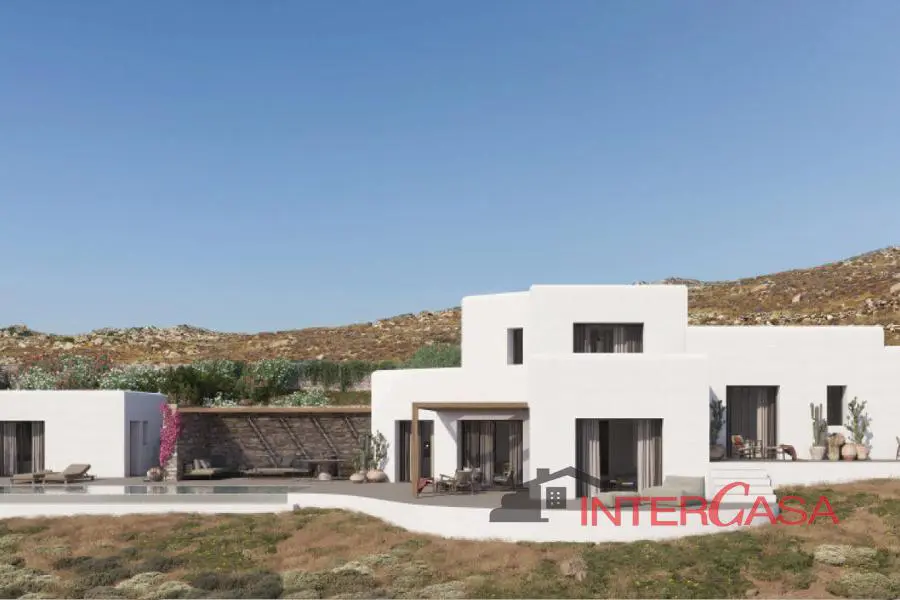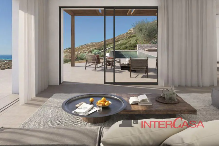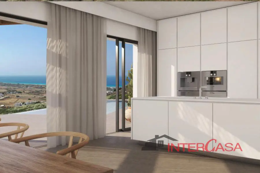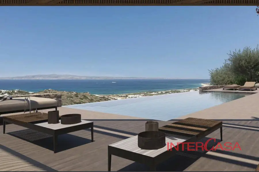 Villa For Sale in Avlia, Naxos, 205 sq.m., plot 3000 sq.m., 3 bedrooms, Fully Equipped Kitchen, WC, Sea view, parking, Balcony, Terrace, BBQ, Outdoor dining and lounge area, Private infinity pool, Garden