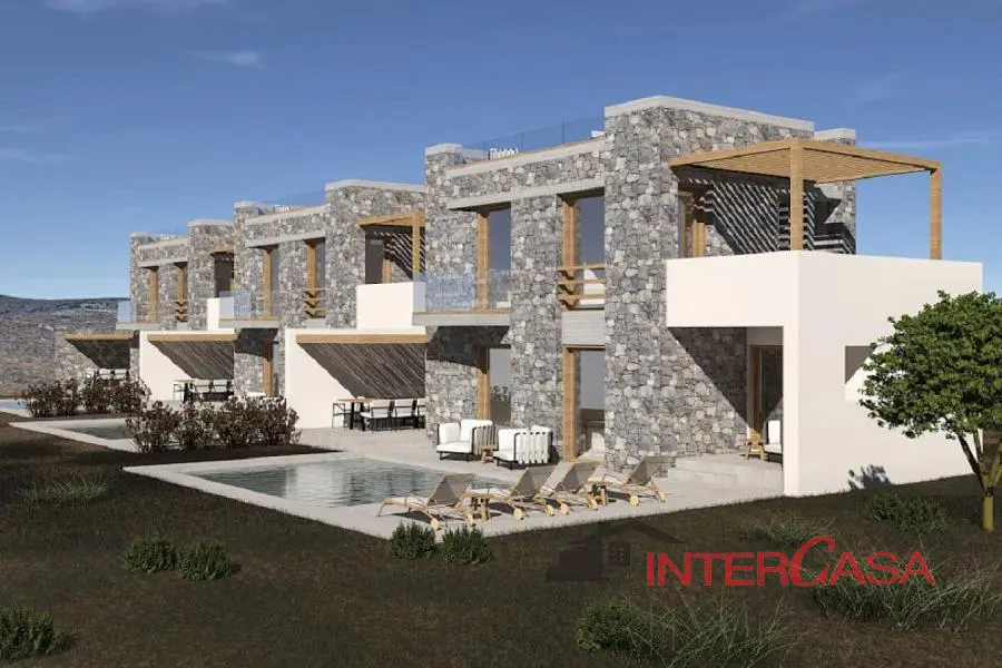 3 Villas For Sale in Plaka Naxos, 115 sq.m. each, plot 500 sq.m. each, 3 bedrooms, 3 bathrooms, Fully Equipped Kitchen, WC, private parking, Balcony, Roof Garden with sunset view, Outdoor dining and lounge area, Swimming pool, Garden Villa A: 580.000€ Villa B: 570.000€ Villa C: 580.000€