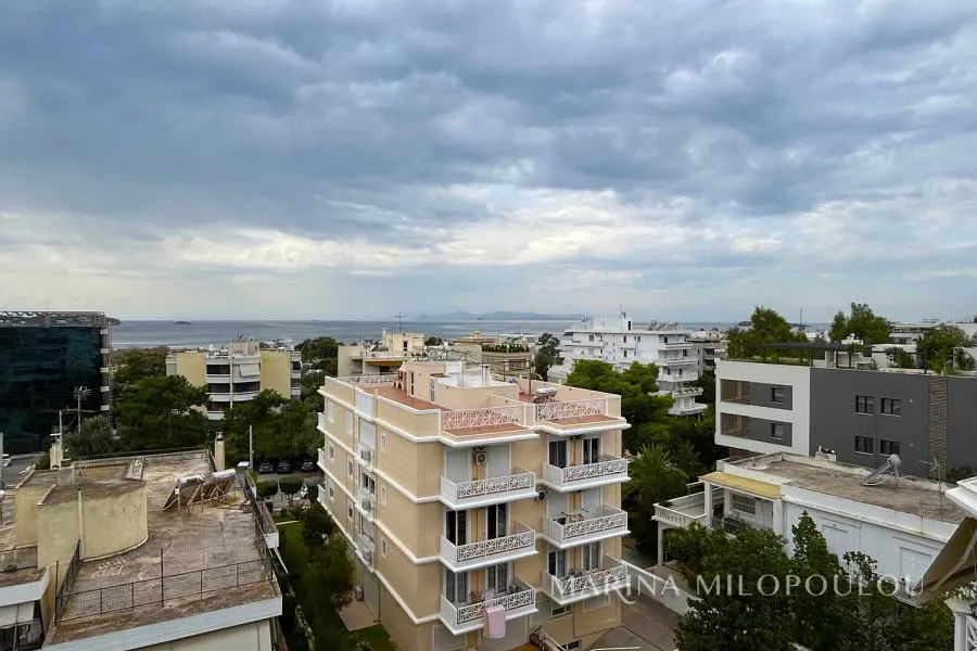 ΒΟΥΛΑ, Κέντρο και πολύ κοντά στην θάλασσα, ανακαινισμένο διαμέρισμα 5ου ορόφου (τελευταίου) με εξαιρετική θέα στην θάλασσα. Χώρος υποδοχής - τραπεζαρία, χωριστή κουζίνα, 2 υ/δ, 1 μπάνιο και 1 wc (ανακαινισμένα), βεράντα προσόψεως με θέα θάλασσας και μπαλκόνι στα υ/δ. Το διαμέρισμα διαθέτει δρύινα δάπεδα στα υ/δ και μαρμάρινα στους υπόλοιπους χώρους, αυτονομία πετρελαίου, ηλιακό θερμοσίφωνα, 1 κλιματιστικό, συναγερμό, διπλά τζάμια, τέντες, πατάρι επάνω από το μπάνιο, 2 θέσεις στάθμευσης στην πυλωτή και αποθήκη 10 τμ. Κοινόχρηστα περ. 40€. Επιτρέπονται κατοικίδια. Βρίσκεται πολύ κοντά στην συμβολή της Λεωφ. Βουλιαγμένης με την Παραλιακή, σε απόσταση 350 μέτρων από την Β' πλαζ Βούλας που αναπλάθεται σε χώρο αναψυχής και άθλησης, 500 μέτρων από το κέντρο της Βούλας, 800 μέτρα από την παραλία του Apollon beach Hotel.