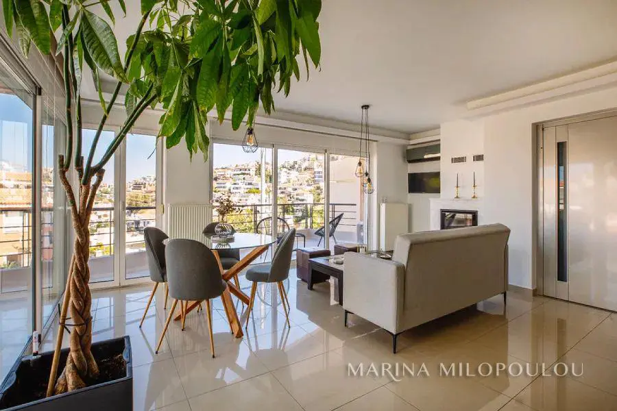 ΒΟΥΛΑ - Πανόραμα, Διαμέρισμα 110τμ, 1ου ορόφου, επιπλωμένο, νοτιοδυτικού προσανατολισμού με εξαιρετική θέα. Αποτελείται από ενιαίο χώρο υποδοχής, open plan κουζίνα, 2 υ/δ (το 1 master) και 1 επιπλέον μπάνιο. Είναι smart Home και διαθέτει ολοκαίνουργια επίπλωση, Wi-Fi, συναγερμό συνδεδεμένο με εταιρεία φύλαξης, εξοπλισμένο με όλα τα οικιακά σκεύη, ψυγείο, πλυντήριο / στεγνωτήριο, πλυντήριο πιάτων, τηλεοράσεις smart, πόρτα ασφαλείας, βεστιάριο, αυτονομία πετρελαίου, ενεργειακό τζάκι, κεντρικό κλιματισμό ψύξη/θέρμανση, δύο εισόδους γυμναστήριο κοινόχρηστο,αποθήκη εσωτερική, 1 θέση στάθμευσης κλειστή. Χωρίς κοινόχρηστα. Αποτελεί μέρος 3όροφου κτιρίου, 3ων κατοικιών, 2 χλμ από την αγορά-εστιατόρια της Βούλας, 3χλμ από την Β' πλαζ Βούλας, 4 χλμ από τον εμπoρικό ιστό της Γλυφάδας.